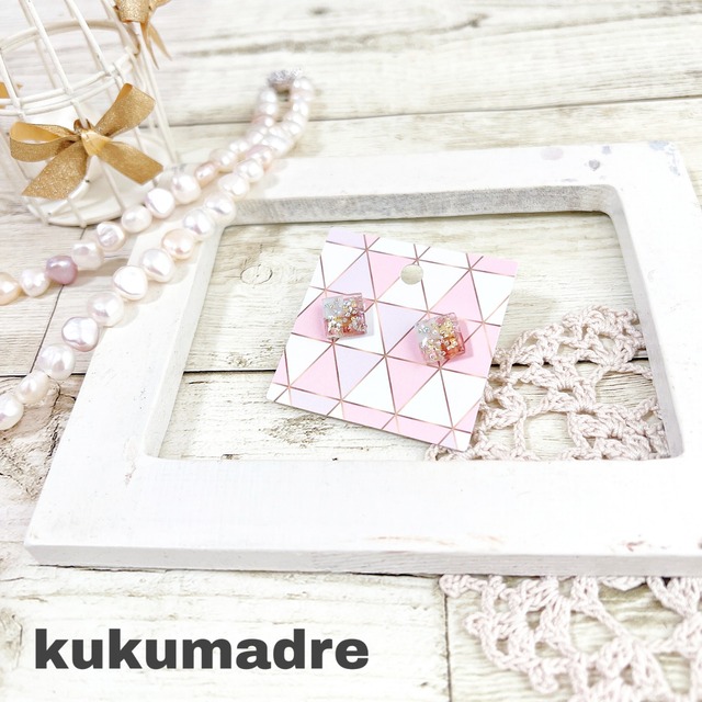 ハンドメイド作品 ご覧頂きありがとうございます。 こちらの商品はキャンディーの様なキラキラピアスになります。 色付けしたレジン液を正方形に型どりしたキュートなアクセサリーです。 ポイントに配置したグリッターがキラキラしてとても可愛いです。 更に今回のピアスにはプリザーブドフラワーのホワイトかすみ草とゴールドチュールを上品に配置しております。 大きさ 1.5cm x 1.5cm 注意事項 既製品より脆い可能性もありますので、丁寧な扱いご理解いただきますようお願いします。 ひとつひとつ検品しておりますが、見落としで多少の歪み・ズレ・キズ・接着剤等がある場合がございます。ご理解いただける方よろしくお願いします。 ピアス部分は金メッキ加工が使用されていますので、肌の弱い方・金属アレルギーの方はご使用はご注意くださいますようお願いします。