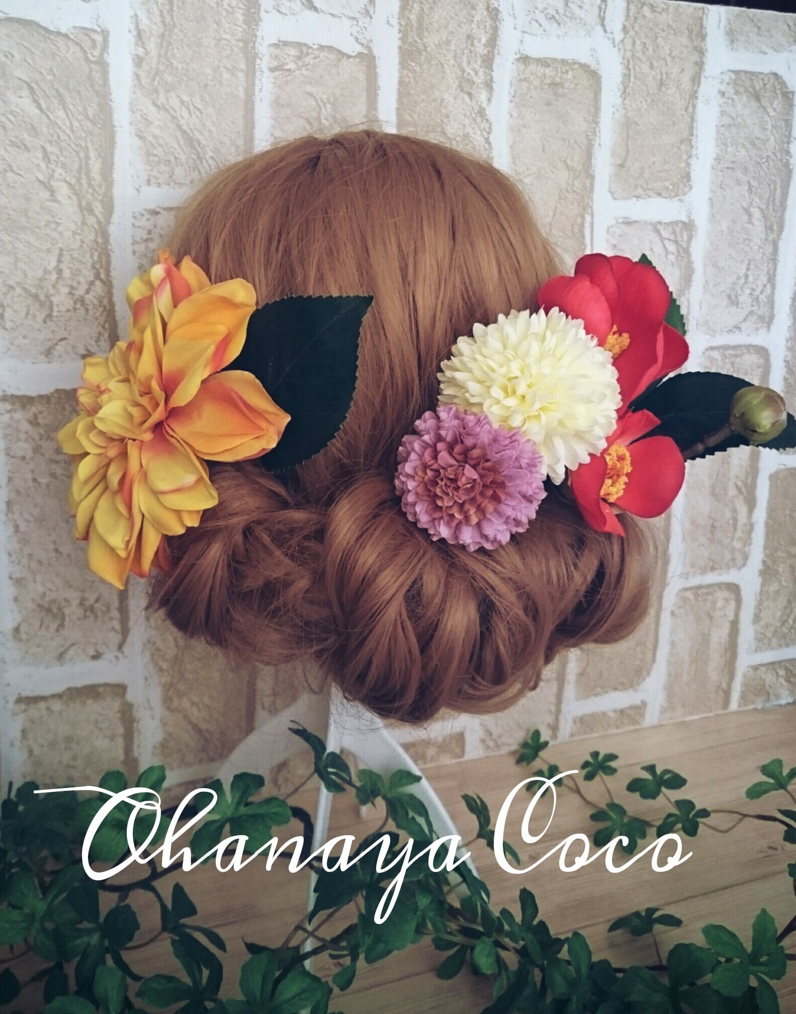 こちらの商品はロマンザダリア マスタードカラーの髪飾り6点Setです。