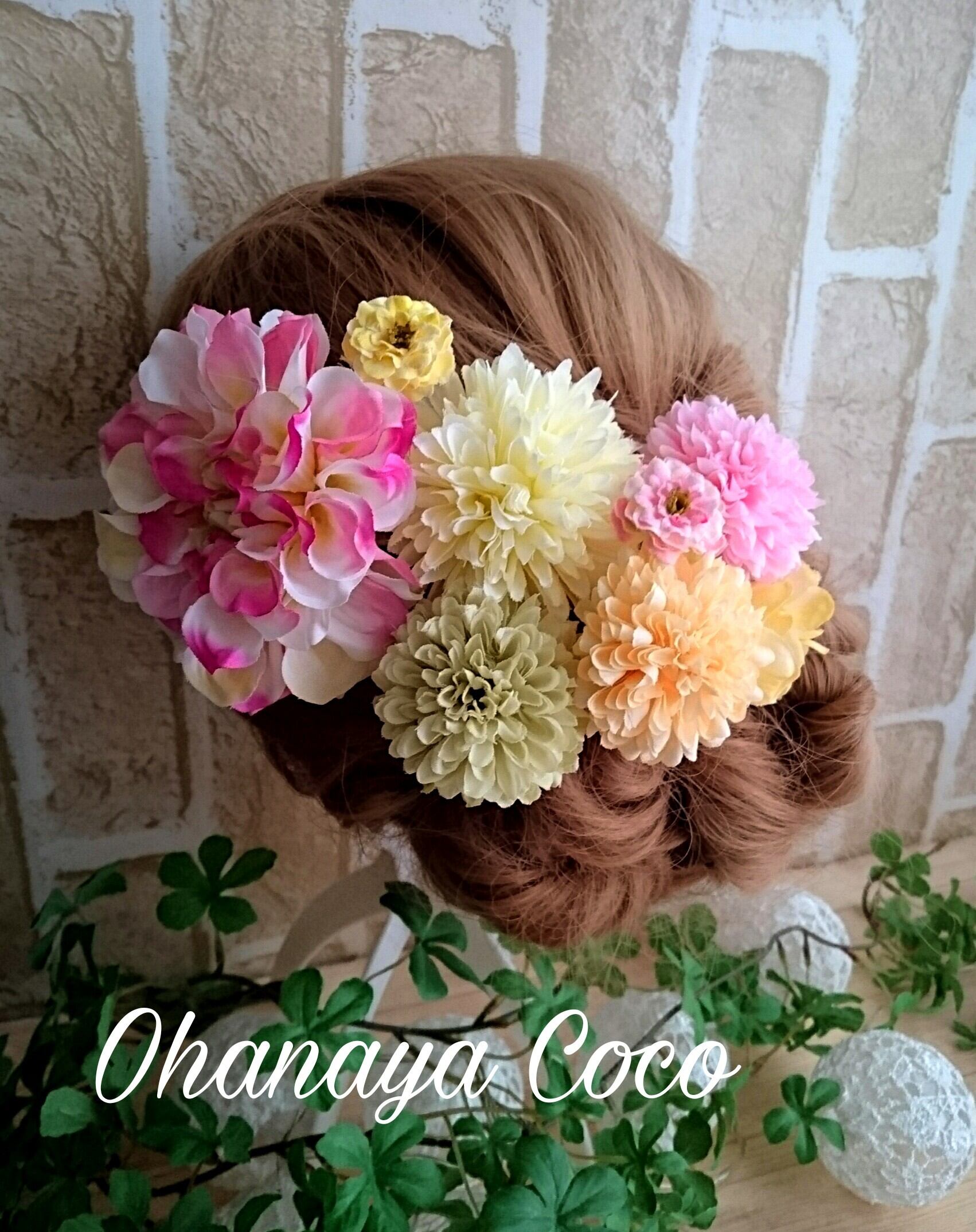 こちらの商品は苺みるくダリア 和装髪飾り8点Setになります。