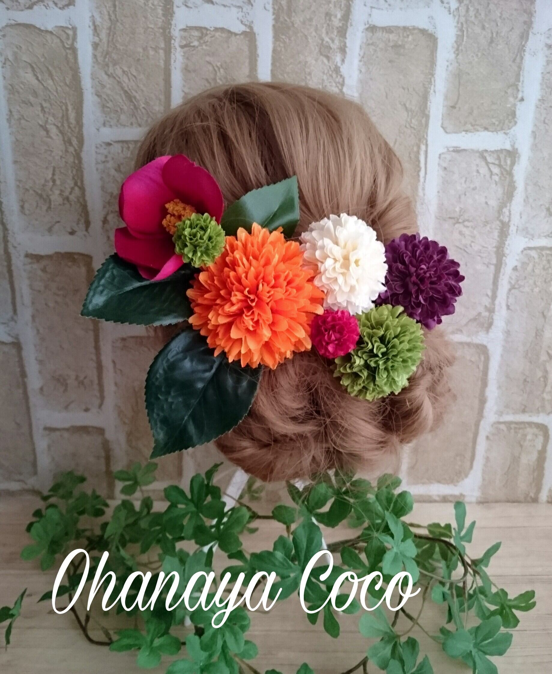 こちらの商品は可憐 椿とオレンジマム 和装髪飾り8点Setです(*´ω`*)