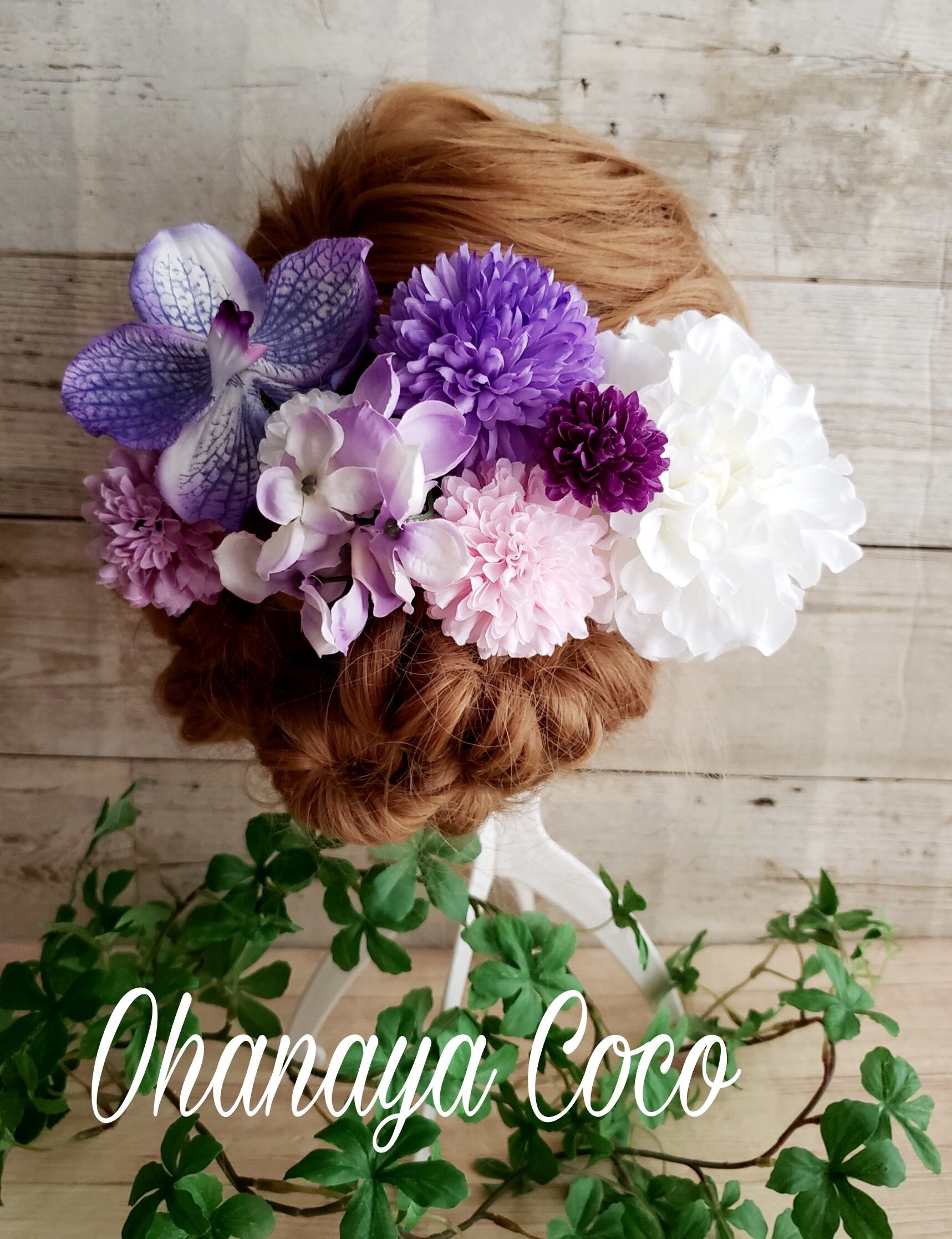 こちらの商品は花雫 パープル系オーキッド髪飾り8点Setです。