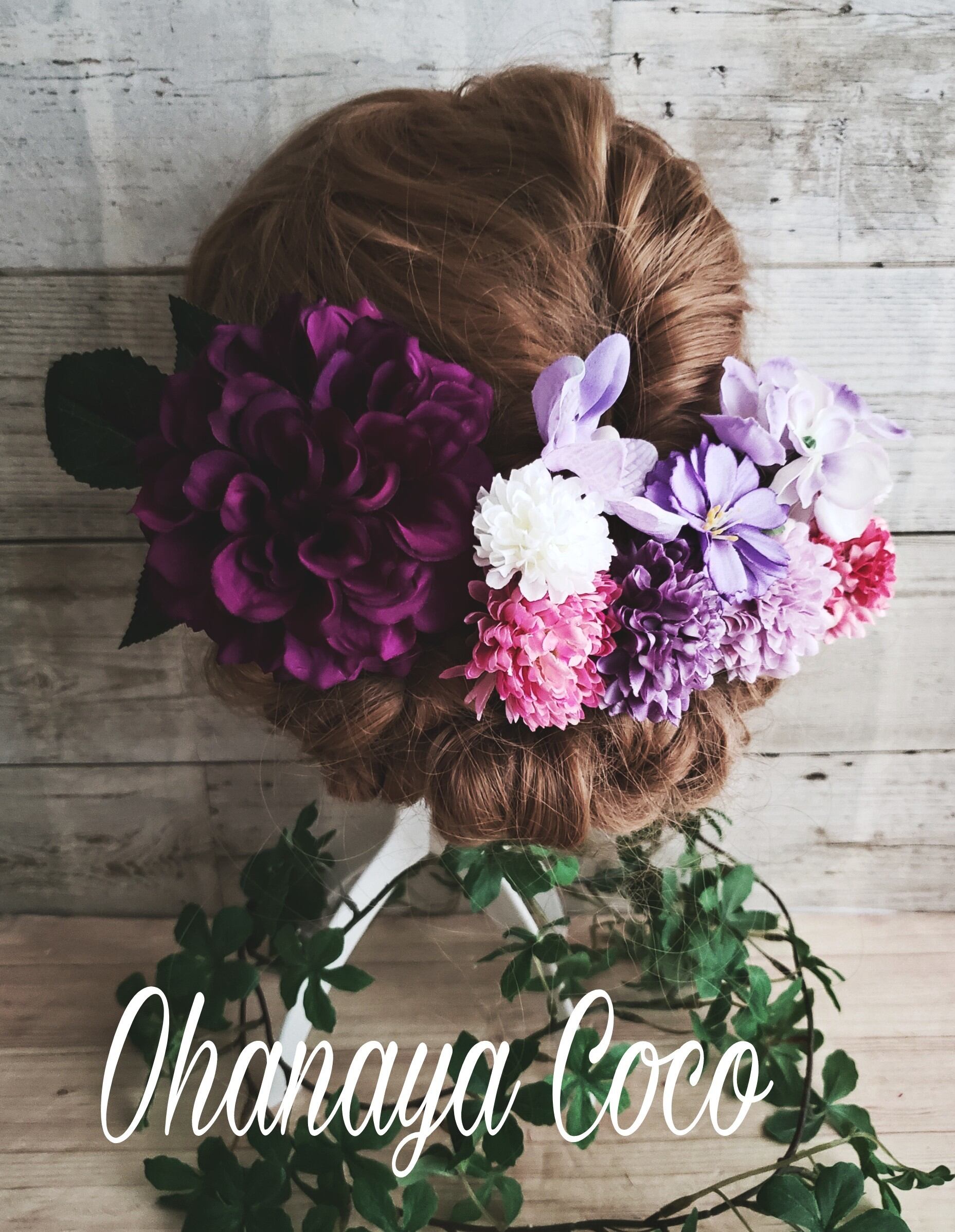 こちらの商品は魅惑のパープル系お花の髪飾り14点Setです。