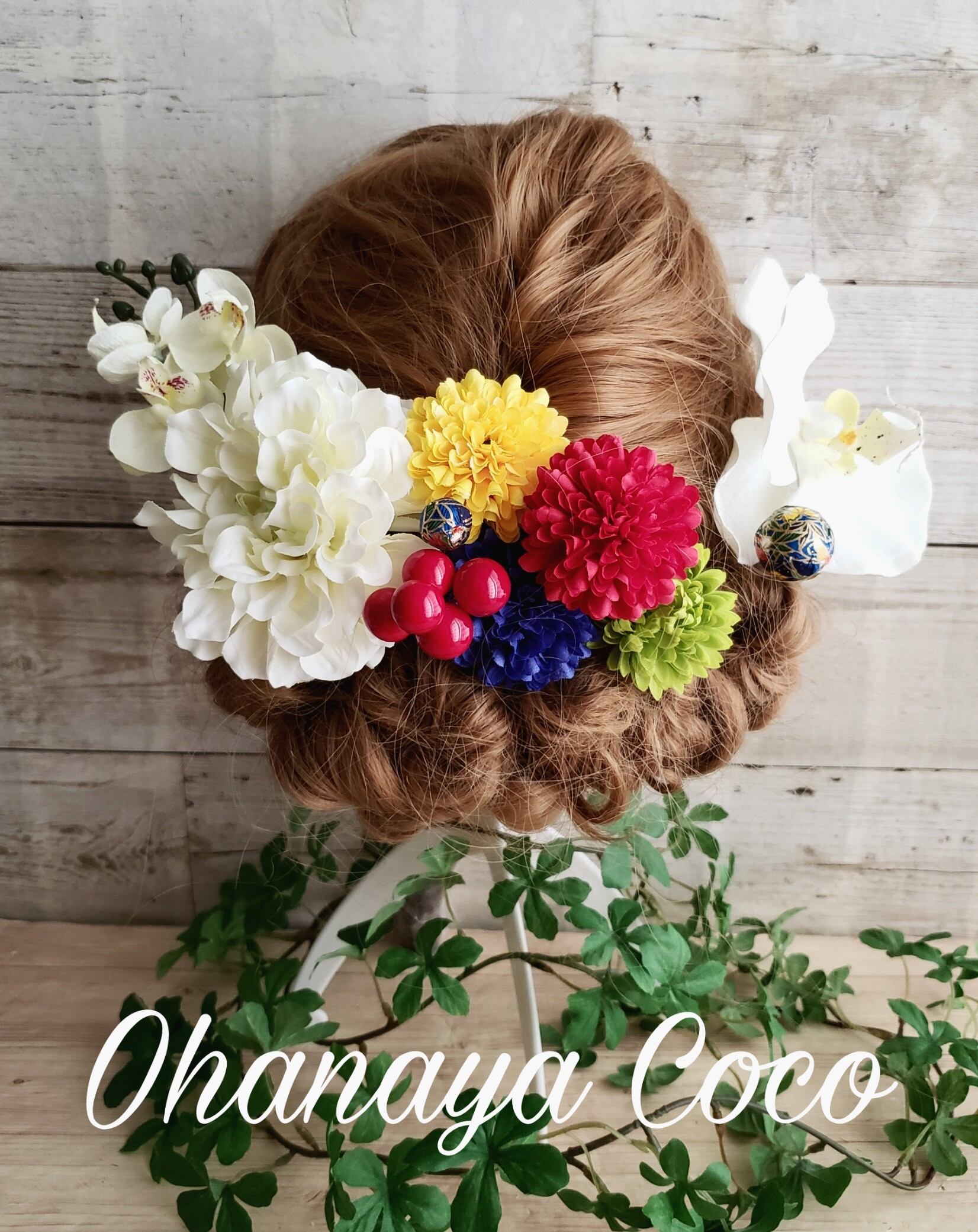 こちらの商品は胡蝶蘭と和柄ボールの髪飾り10点Setです。。
