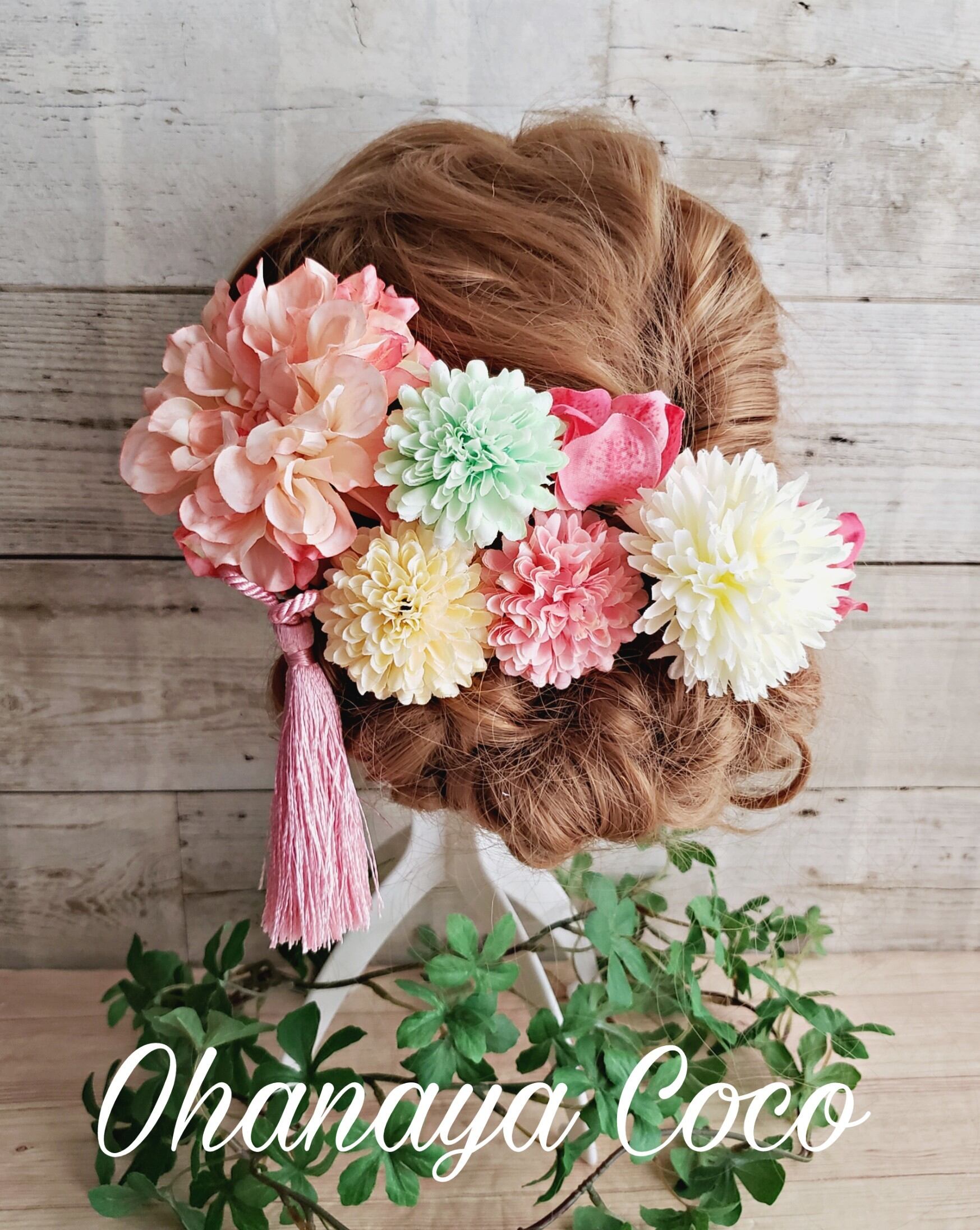 #和装 #造花 #白無垢 #振袖ヘア #色打掛 #成人式 #前撮り #ウェディング #白無垢髪飾り #振袖髪飾り #成人式 #浴衣 #花嫁髪飾り #袴髪飾り #パステルカラー