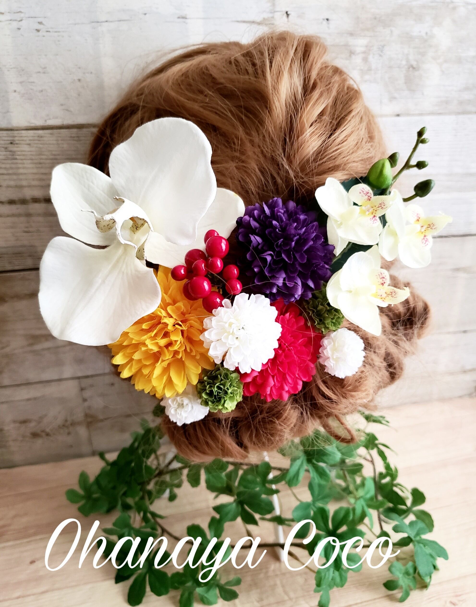 こちらの商品は華やか胡蝶蘭とマムの和装髪飾り12点Setです。。