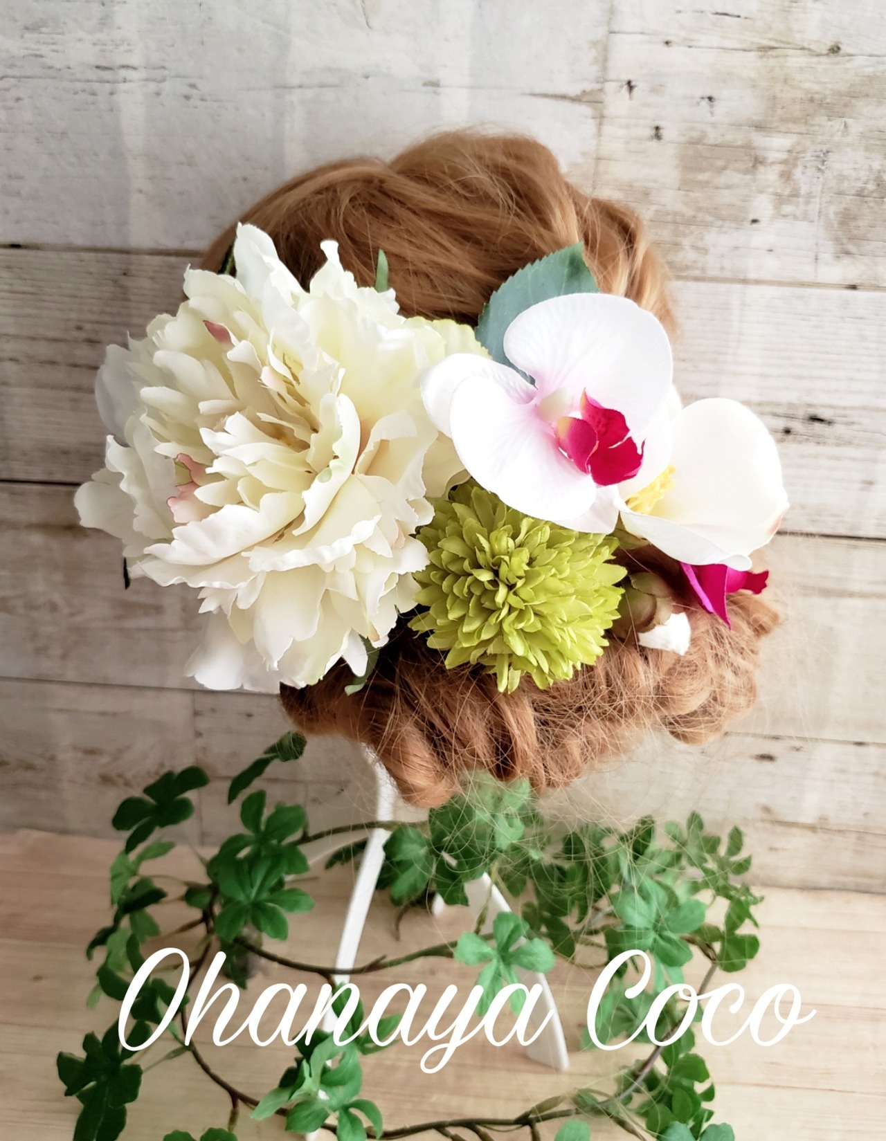 こちらの商品は花詩 芍薬とオーキッドの髪飾り6点Setです。