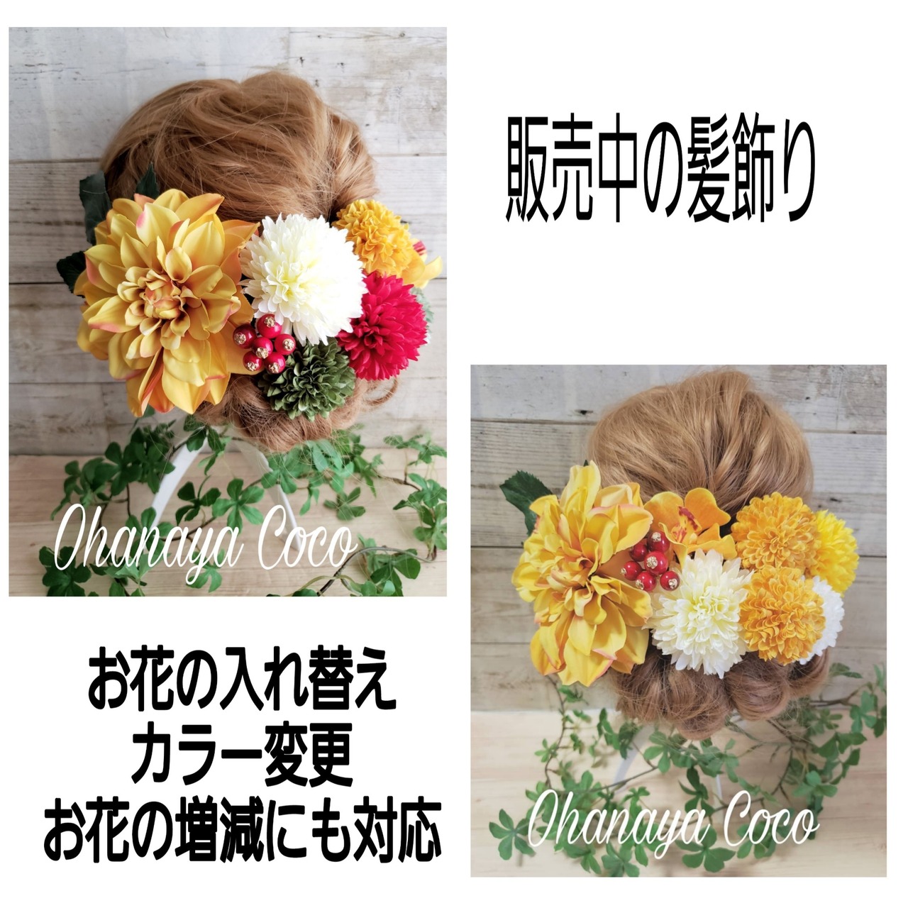 その他、在庫がある場合のみお値段は上下しますが、販売中の髪飾りのお花の入れ替え、カラー変更、お花の増減にも対応致しますのでお気軽にお声掛け下さいませ。