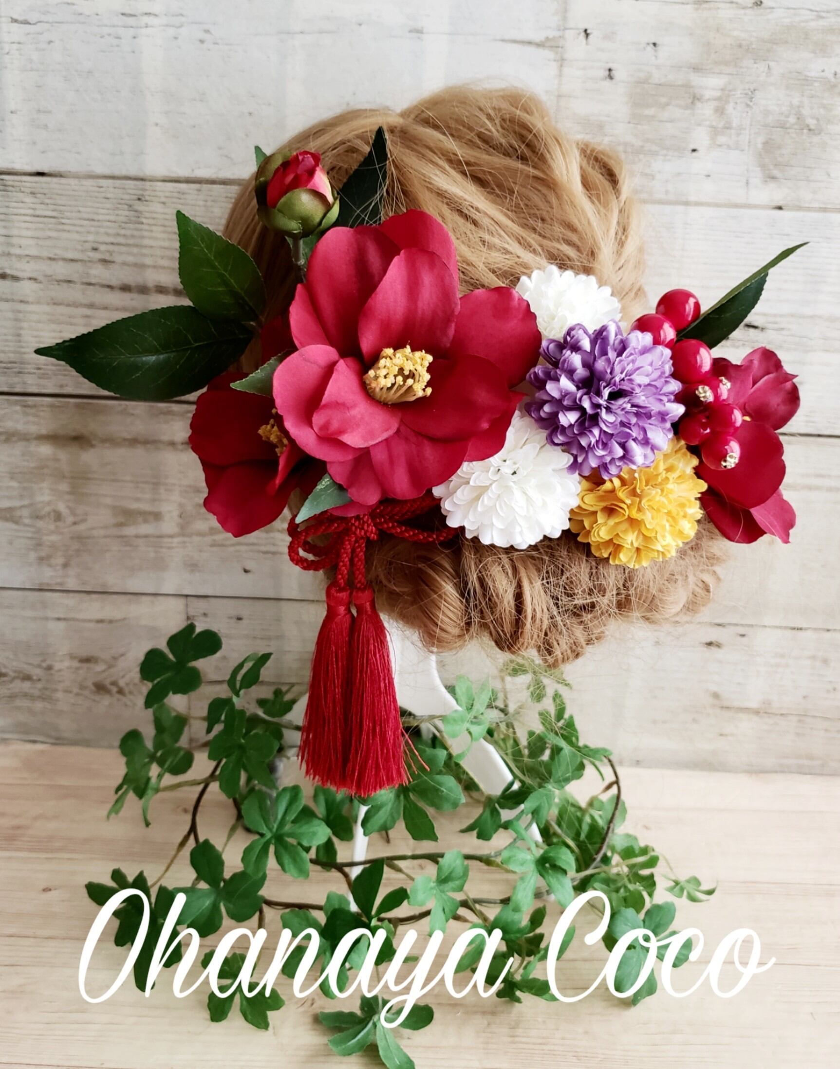 こちらの商品は華雅 椿とマムの和装髪飾り11点Setです。