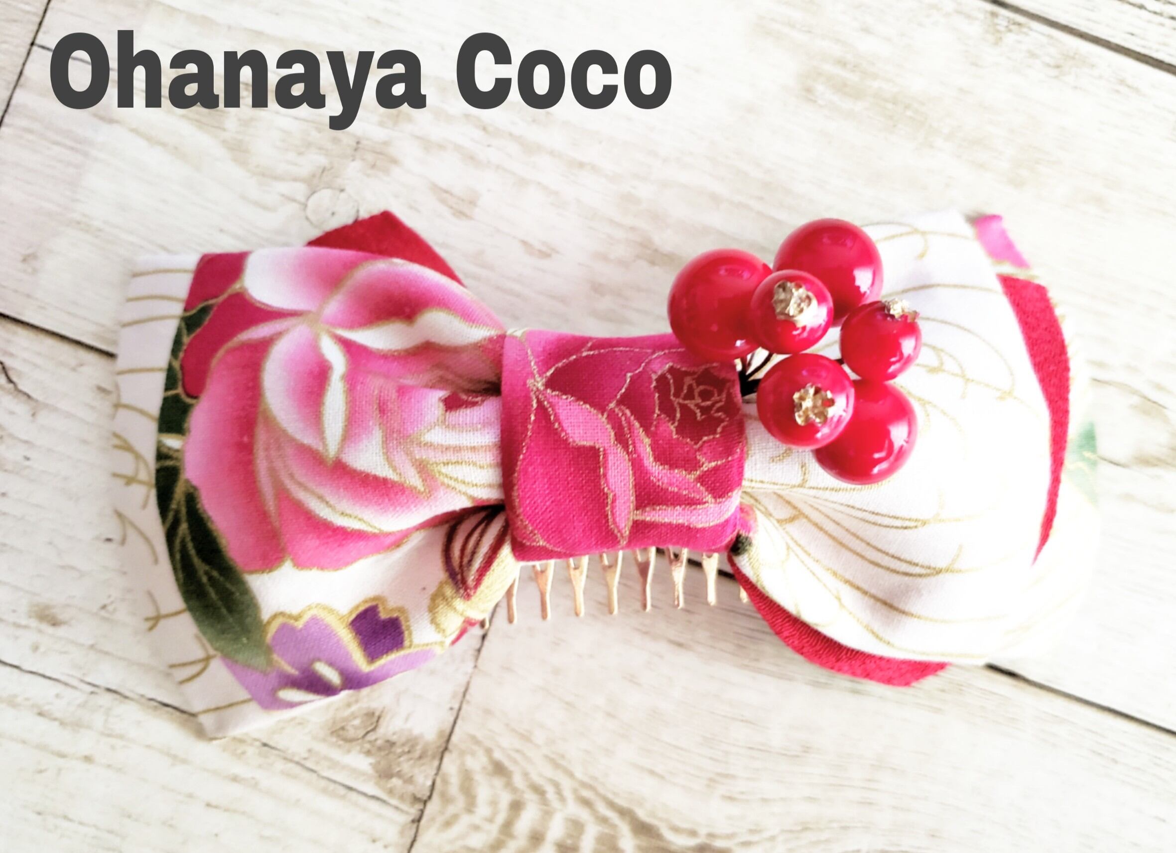 また、撮影角度などにより大きく見える場合もありますので実際の髪飾りの大きさは記載のサイズをご確認下さいませ。