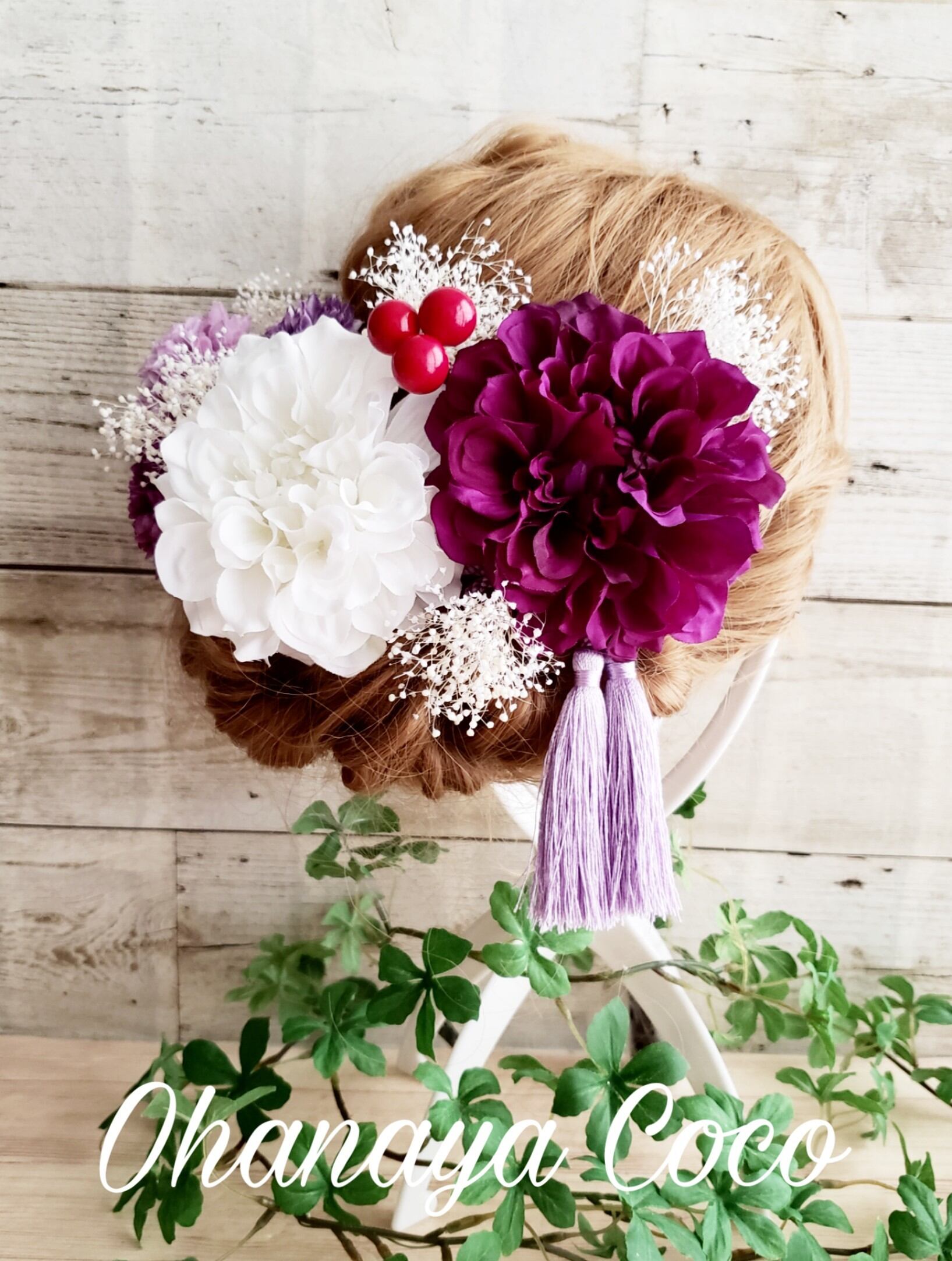 #和装 #造花 #白無垢 #色打掛 #白無垢 #振袖髪飾り #成人式 #袴 #卒業式 #お色直し #髪飾りオーダー #ポンポンマム #七五三 #キュート #和モダン