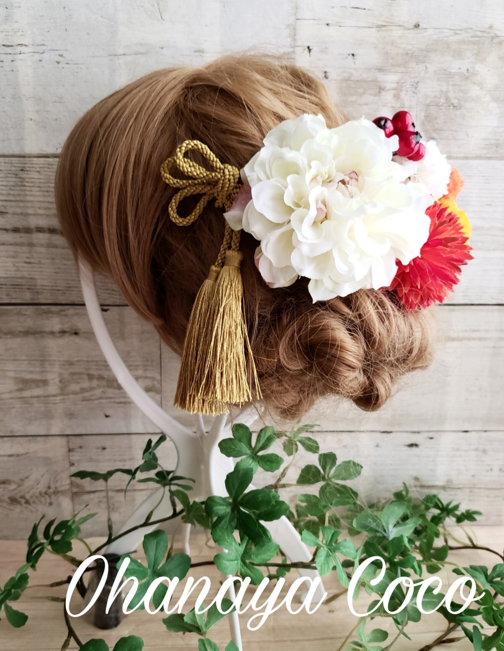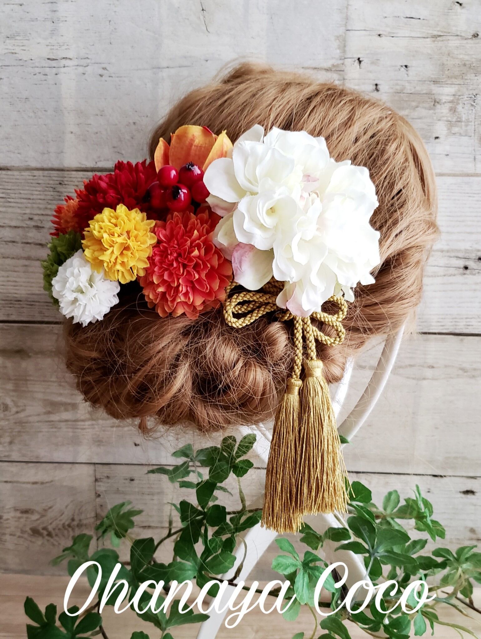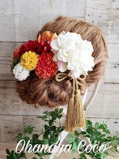 #和装 #造花 #白無垢 #成人式 #袴 #大正ロマン #髪飾りオーダー #ポンポンマム #キュート #和モダン #和風レトロ #タッセル #袴髪飾り #和装小物