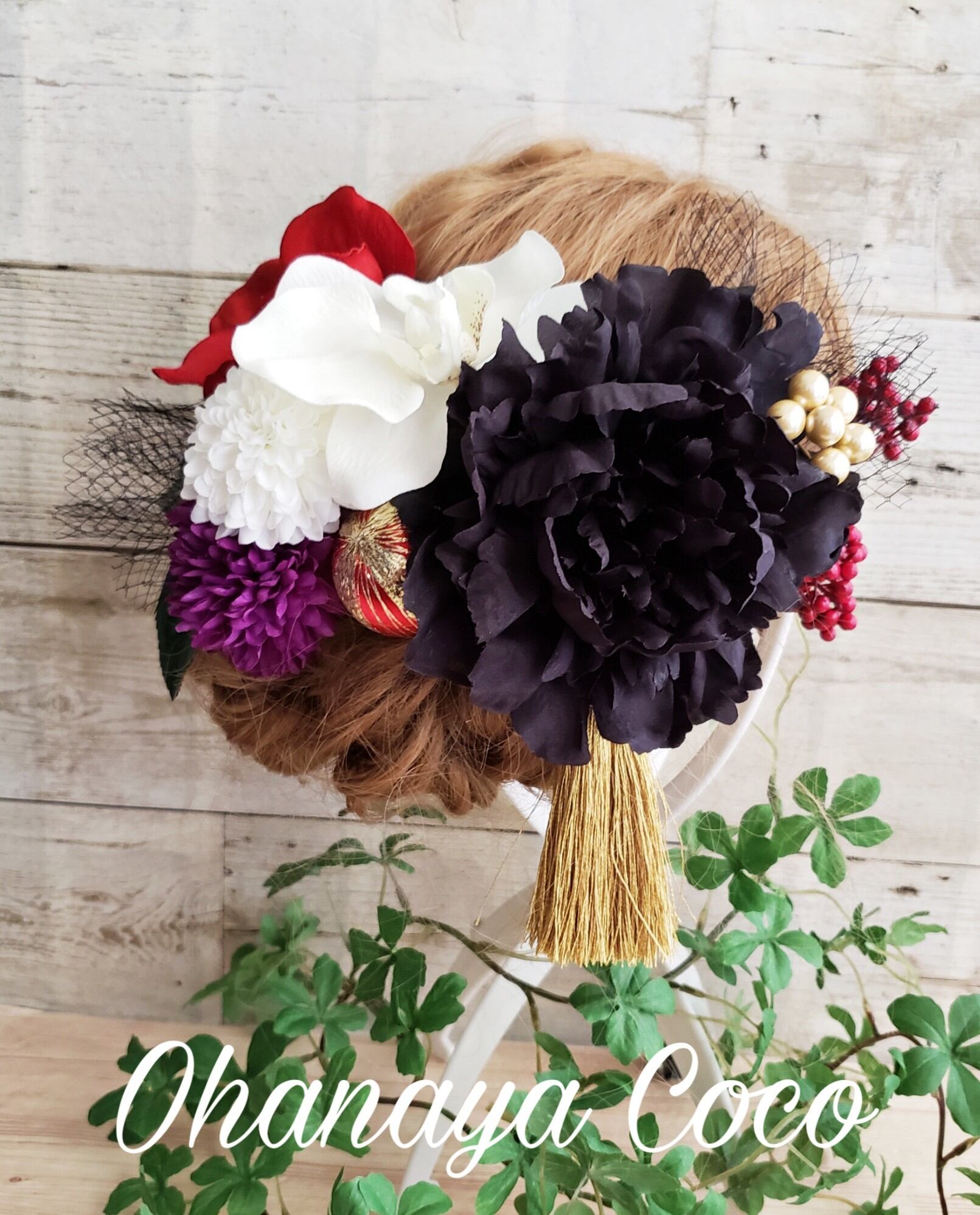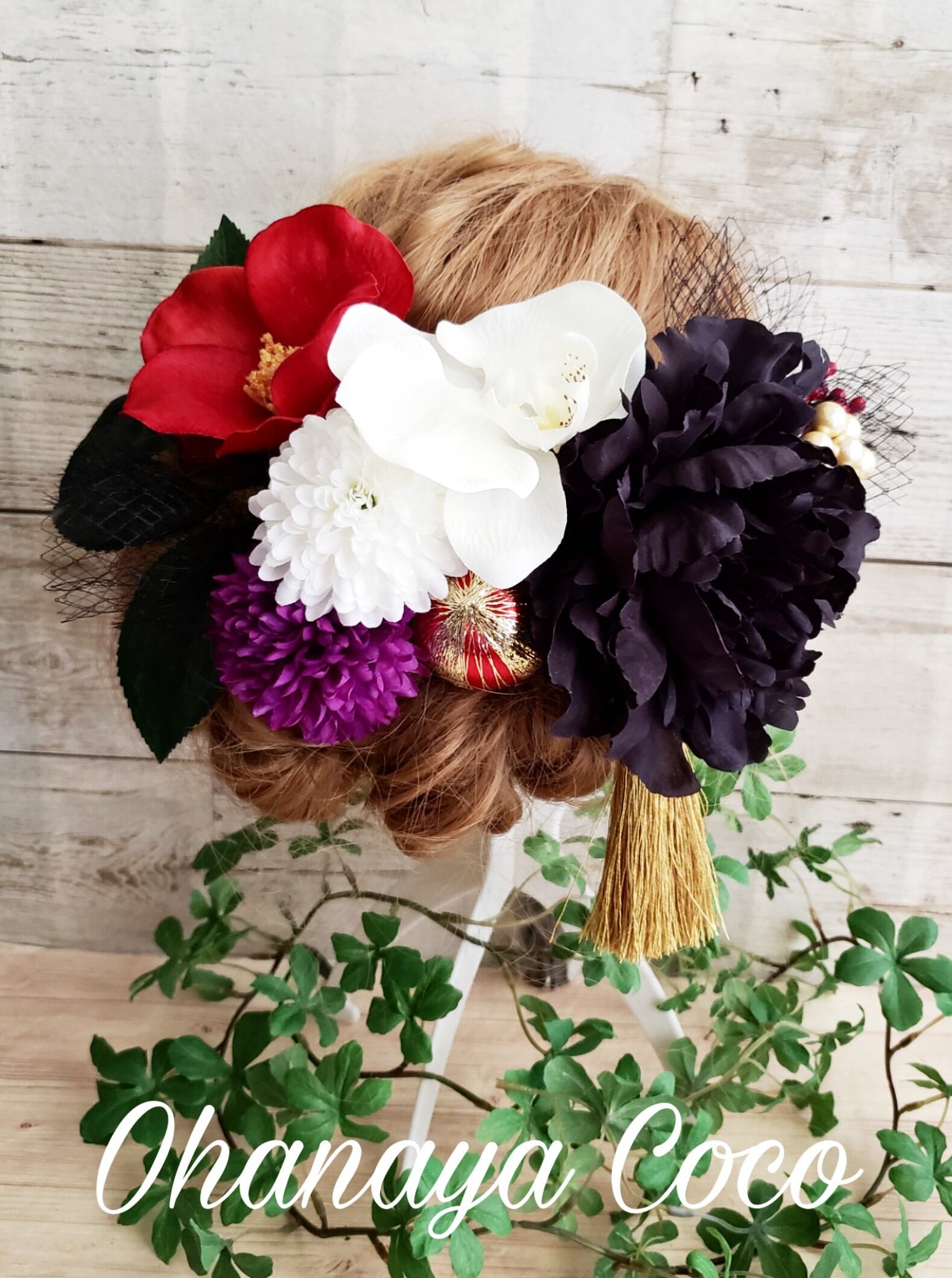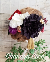 花魁 江戸椿と黒芍薬の髪飾り13点Set No376