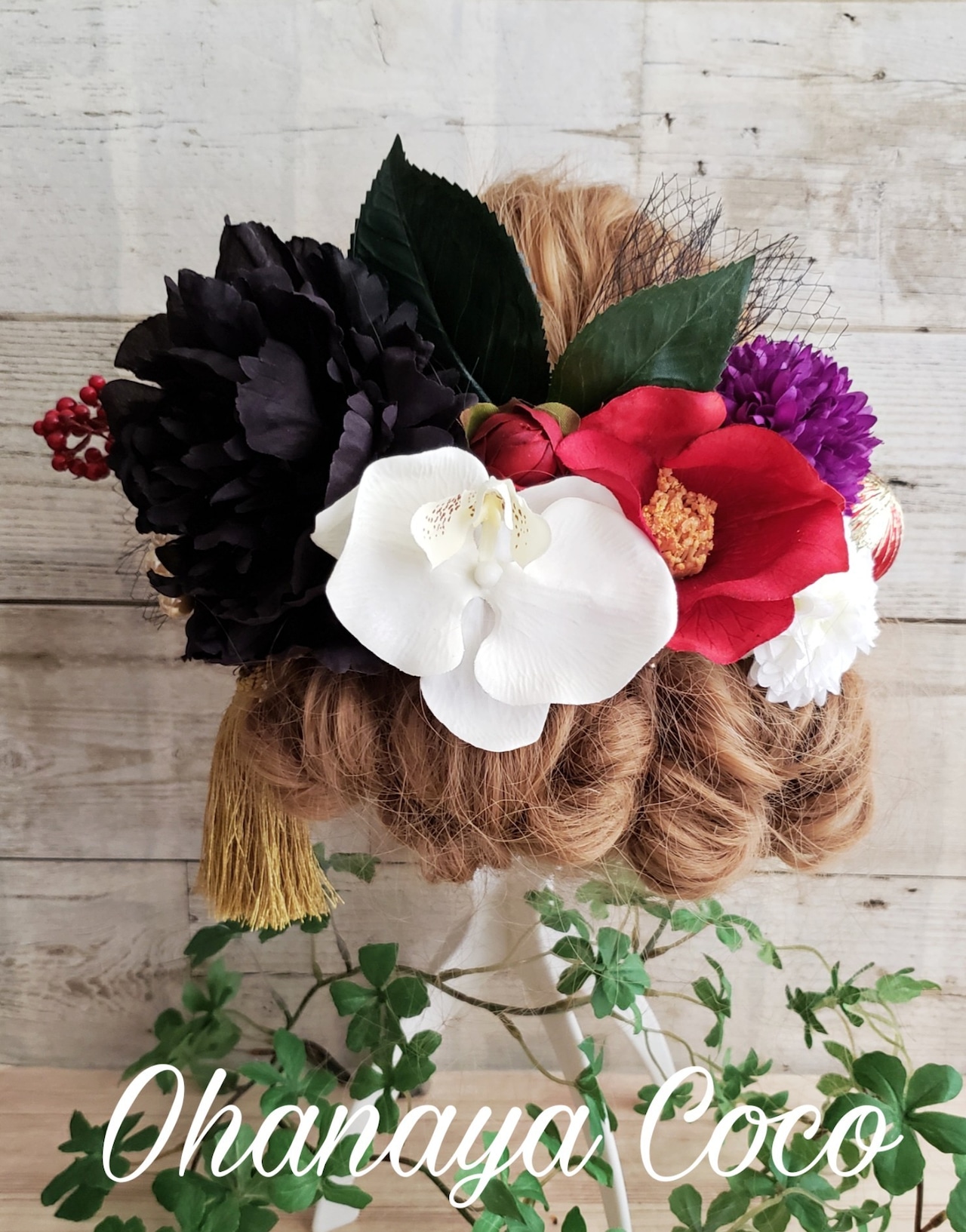 こちらの商品は花魁 江戸椿と黒芍薬の髪飾り13点Setです。