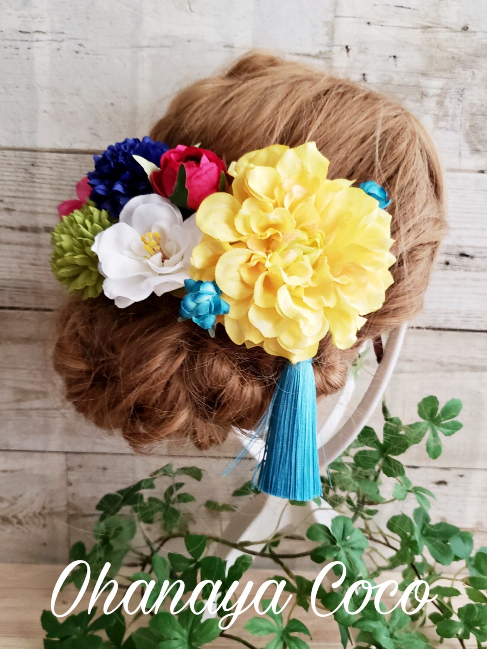 #和装 #造花 #白無垢 #成人式 #袴 #大正ロマン #髪飾りオーダー #ポンポンマム #キュート #和モダン #和風レトロ #タッセル #袴髪飾り #和装小物