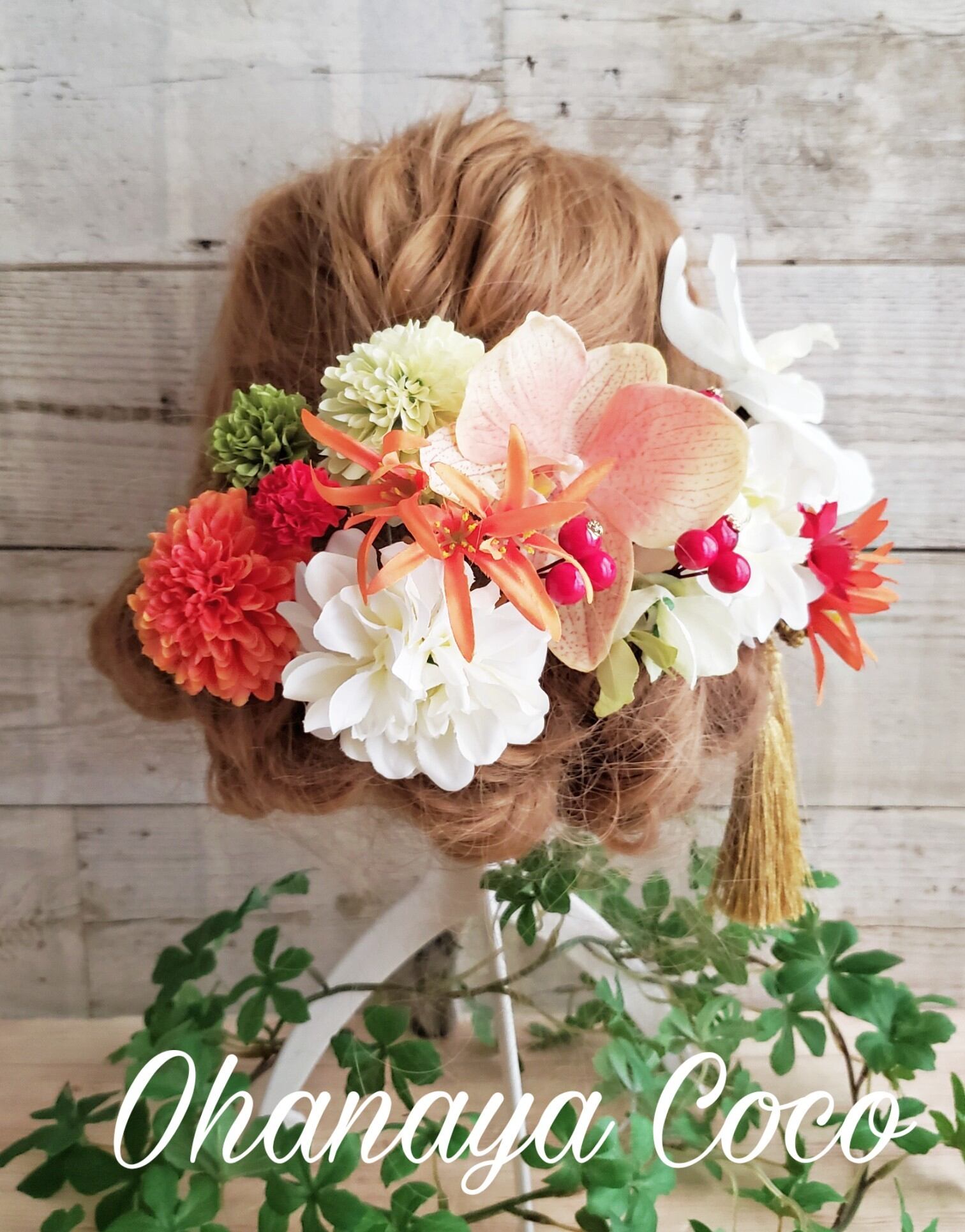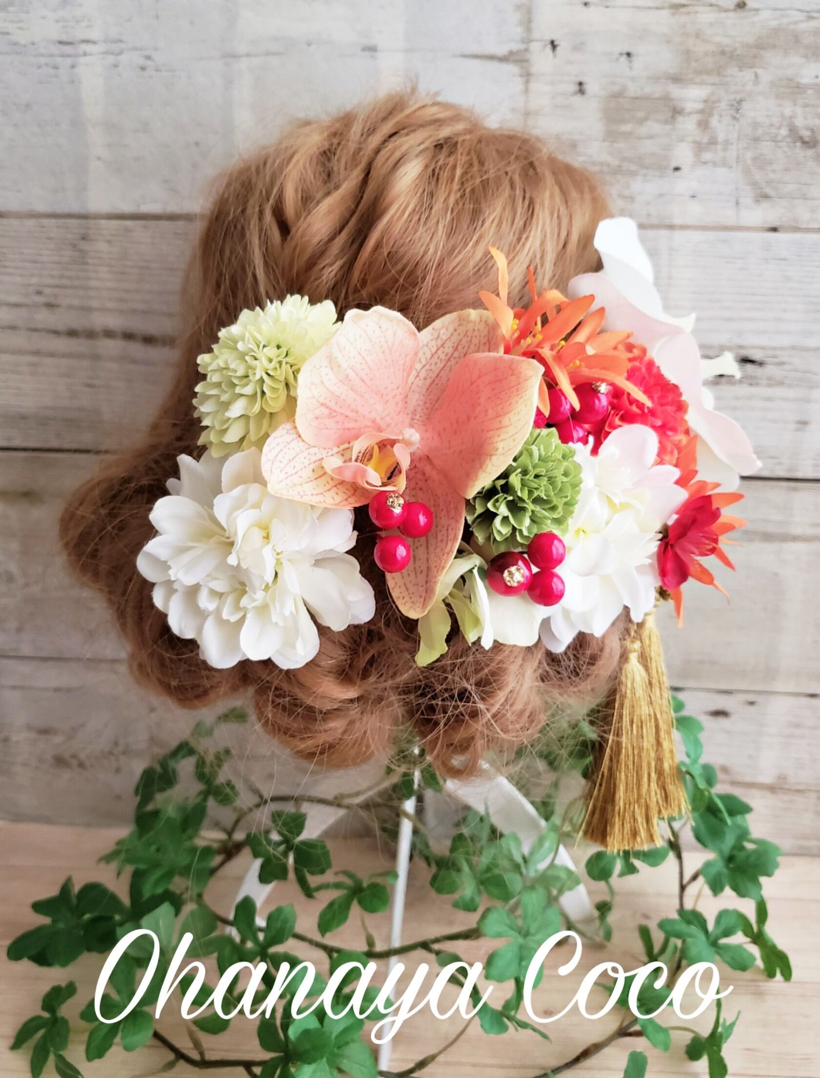 #和装 #造花 #白無垢 #成人式 #袴 #大正ロマン #髪飾りオーダー #ポンポン #和風レトロ #タッセル #袴髪飾り #和装小物