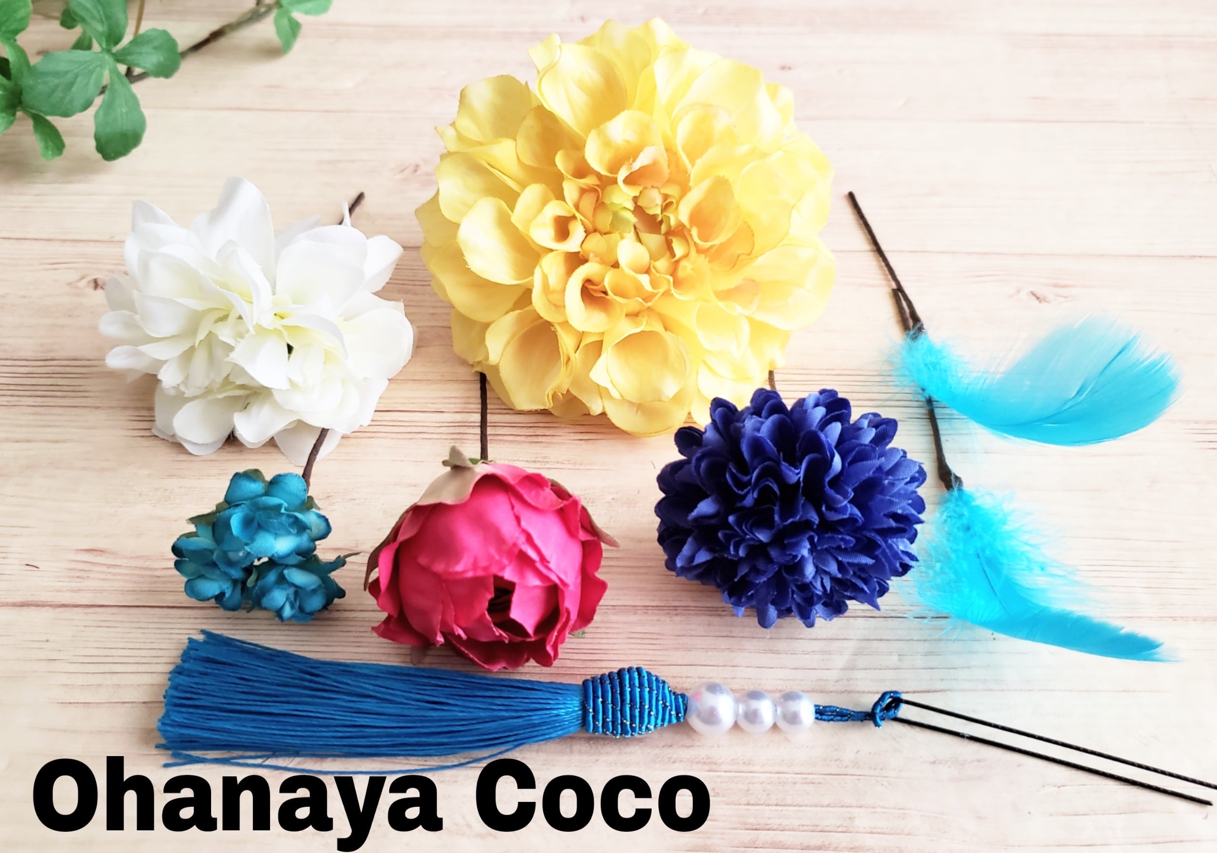 また、撮影角度などにより大きく見える場合もありますので実際の髪飾りの大きさは記載のサイズをご確認下さいませ