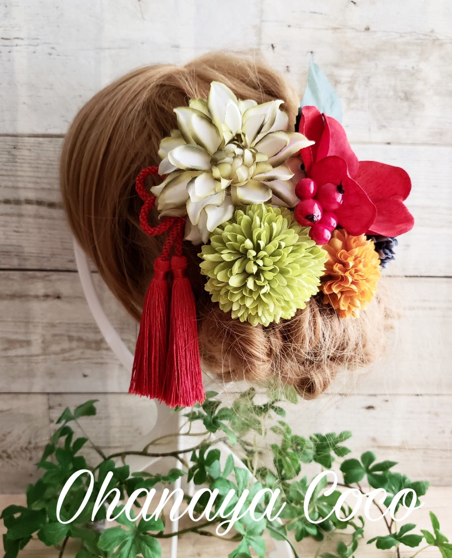 #髪飾りオーダー #ポンポンマム #キュート #和モダン #和風レトロ #タッセル #袴髪飾り #和装小物 #髪飾りオーダー #胡蝶蘭アクセサリー #結納振袖小物 #卒業式袴 #ポンポンマム #花嫁髪飾り