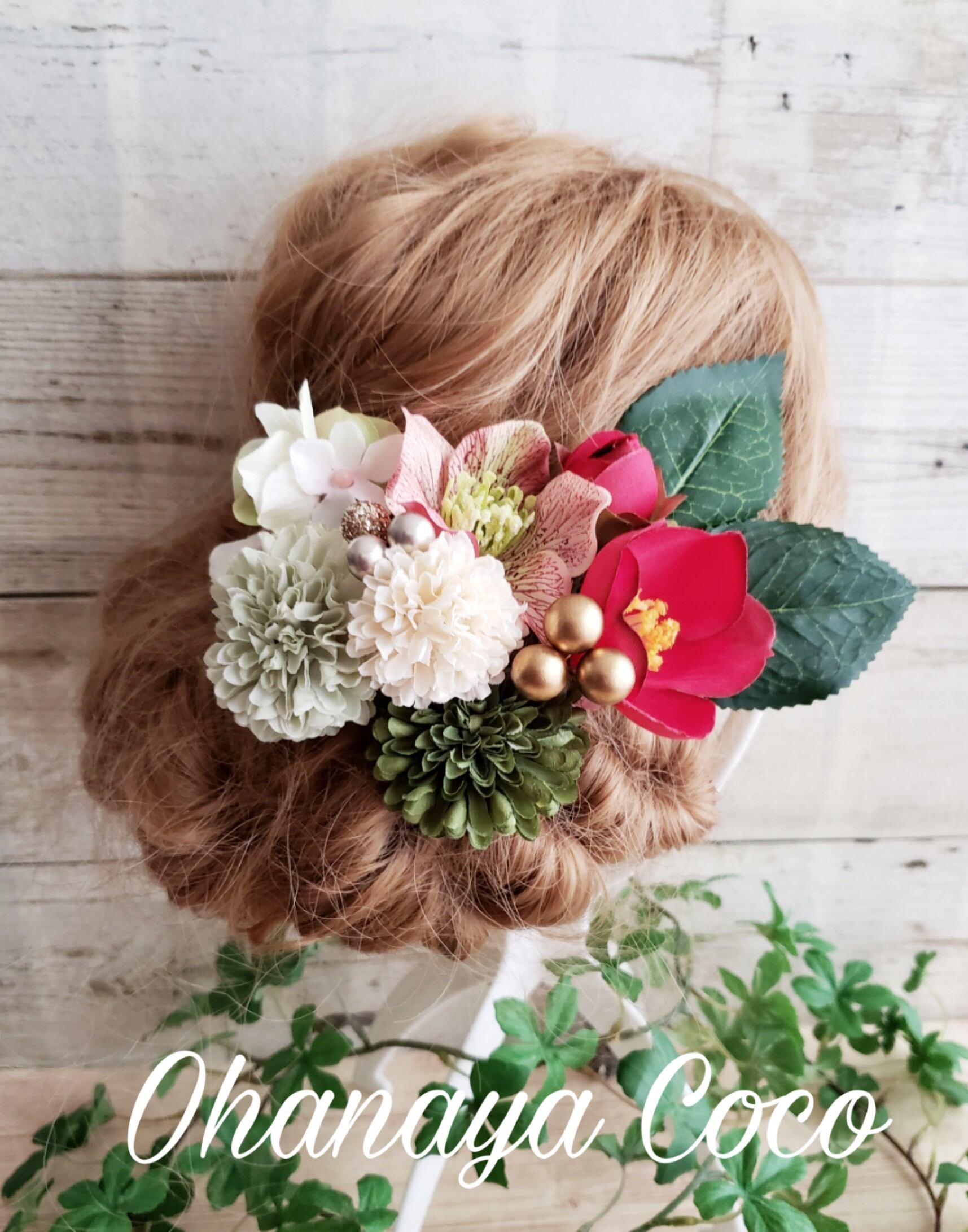 こちらの商品は早春椿とマムの髪飾り10点Setです。