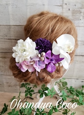 こちらの商品はhirahira 胡蝶蘭とパープル系お花の髪飾り7点Setです。