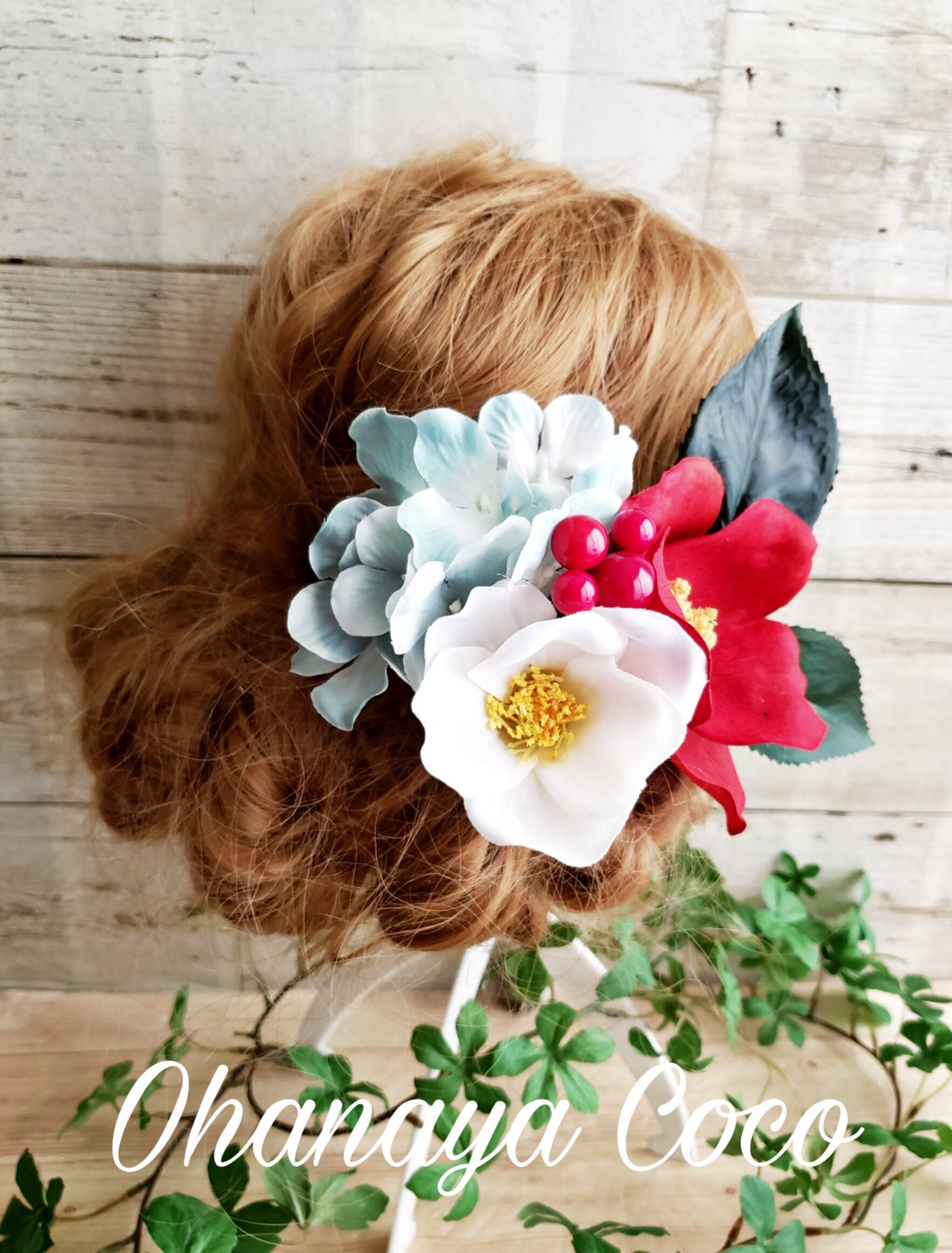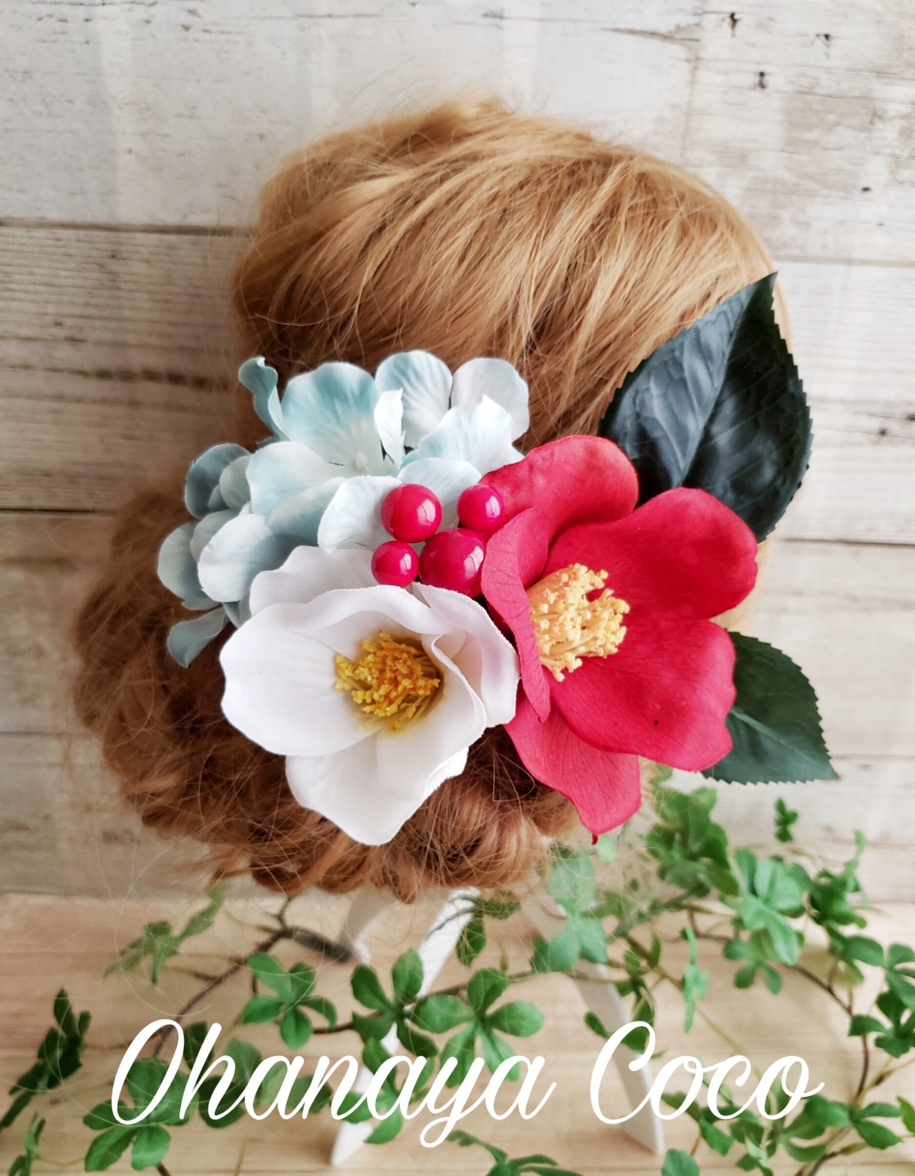 こちらの商品は花雅 真っ赤な椿と真っ白椿の髪飾り5点Setです。