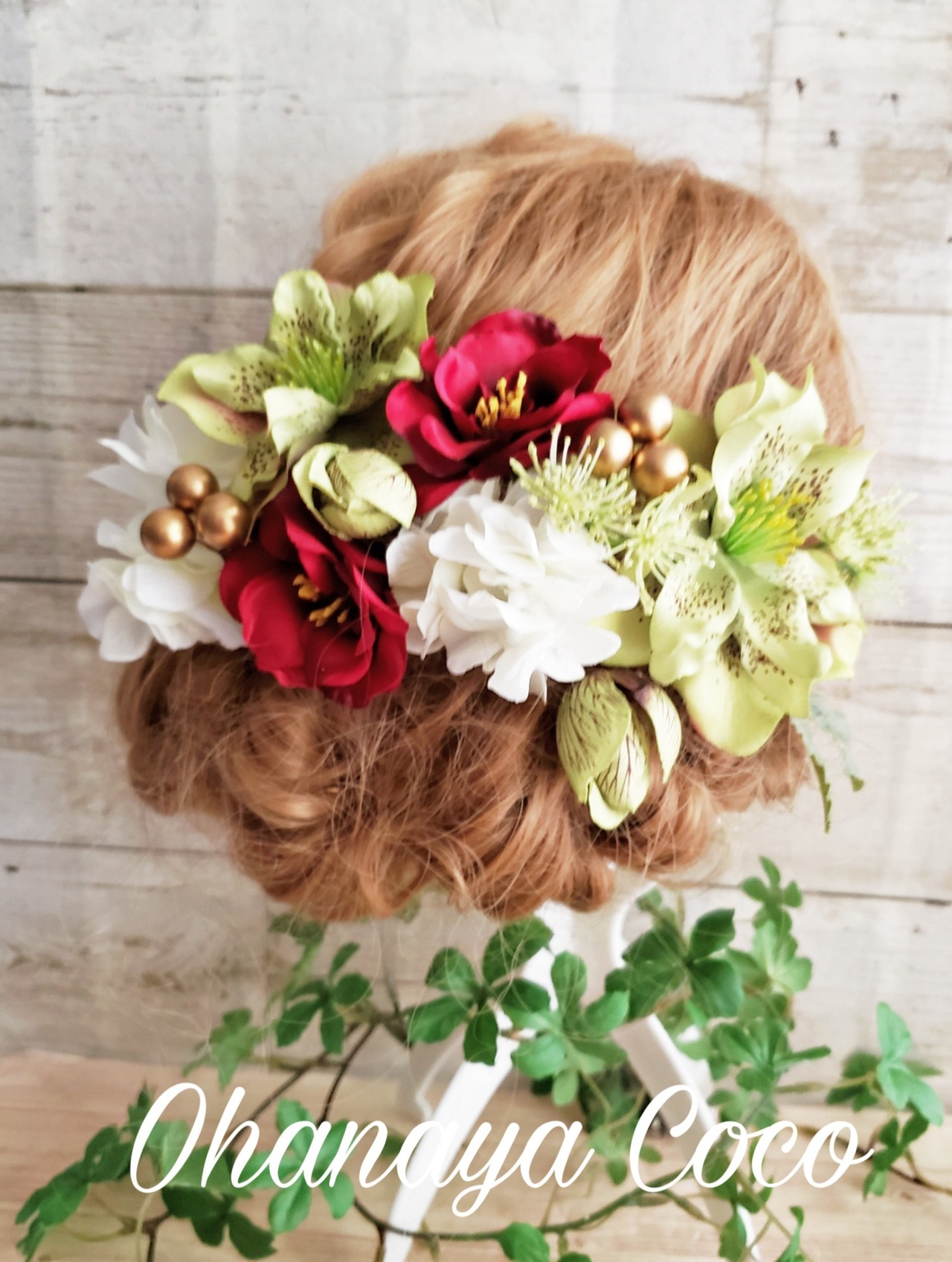 こちらの商品は華やかローズと椿の髪飾り13点Setです。