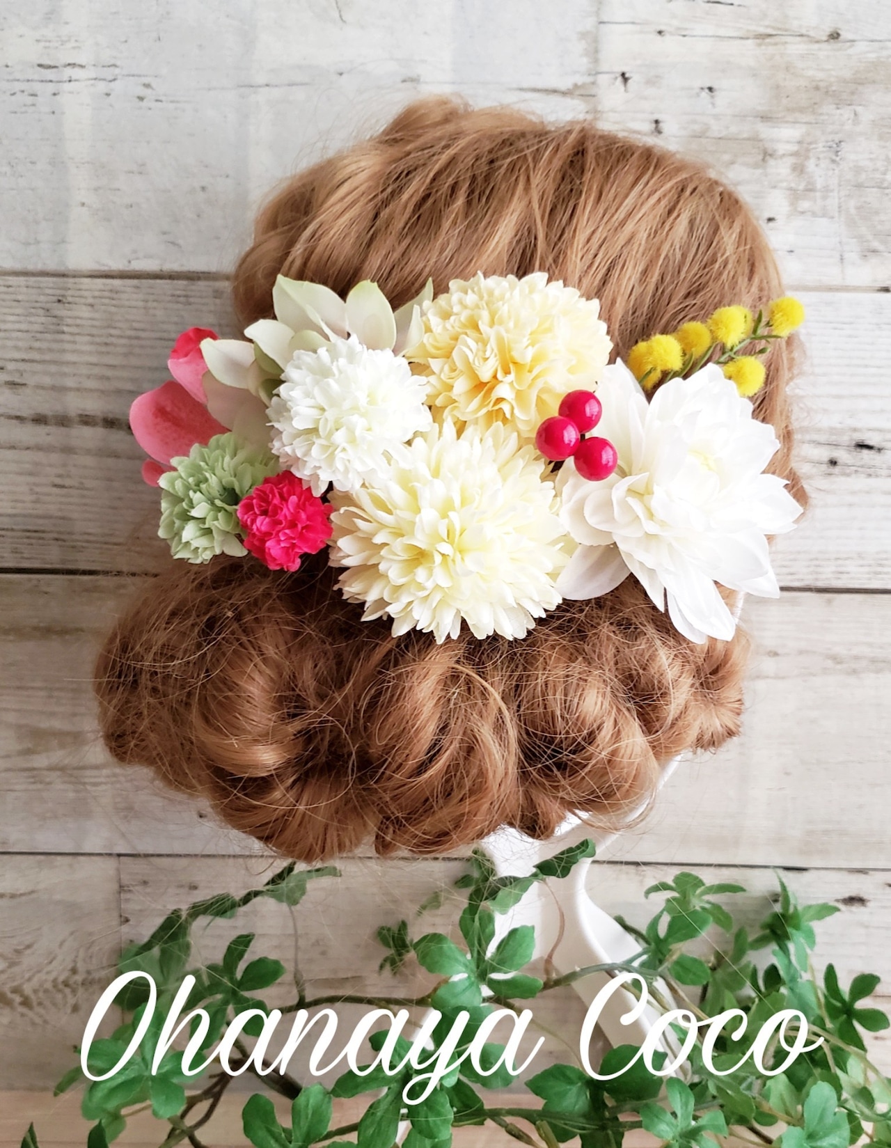 こちらの商品は春色マムとミモザの髪飾りの髪飾り10点Setです。