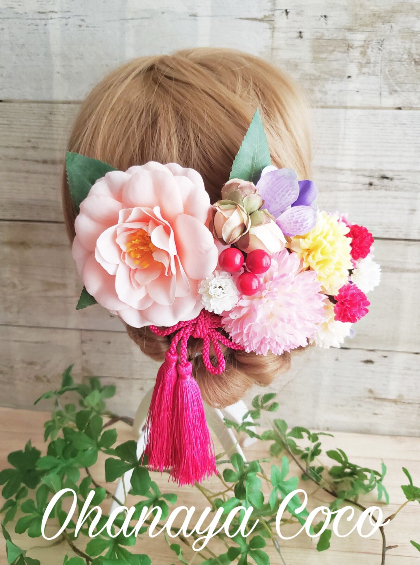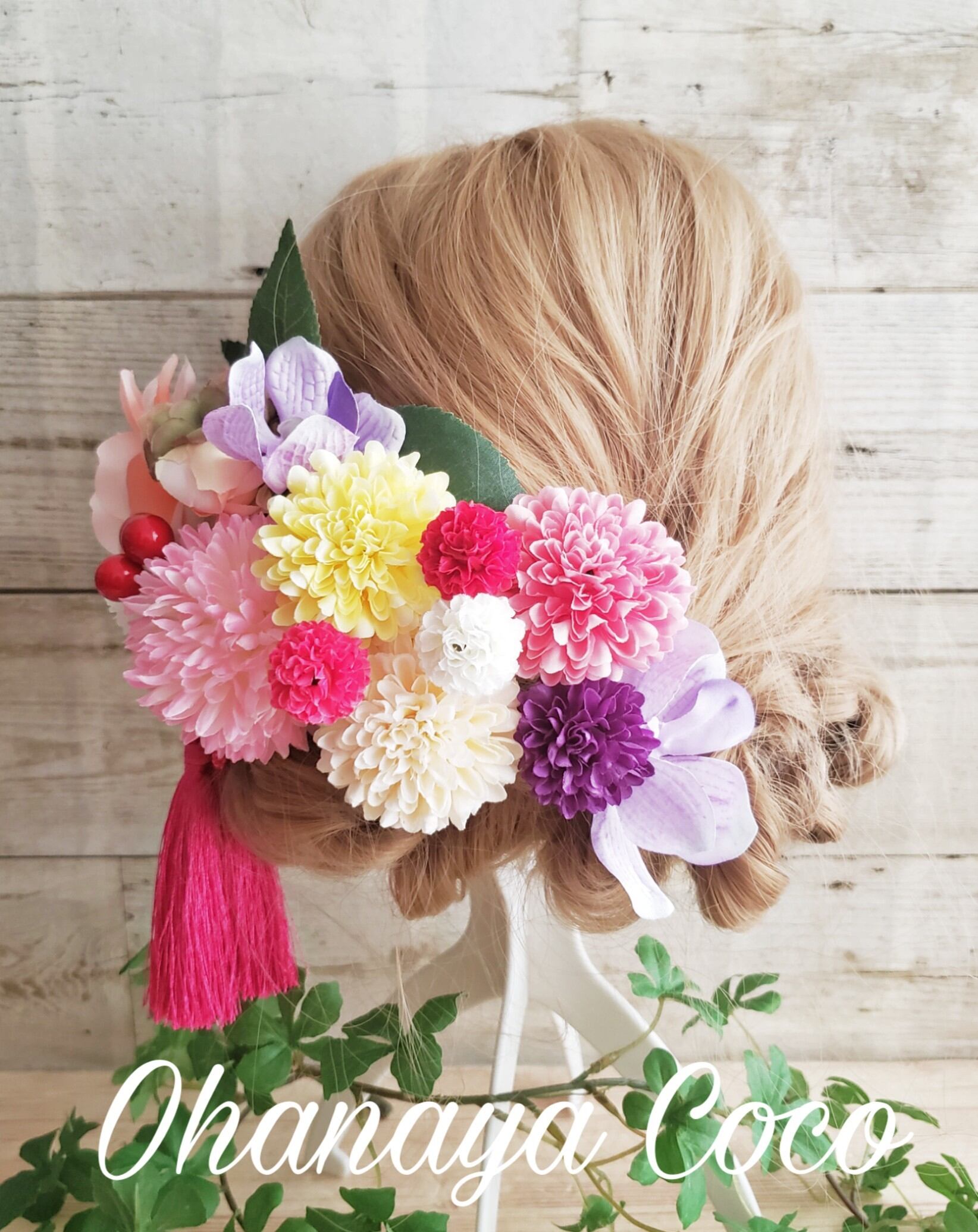 #和装 #造花 #白無垢 #成人式 #袴 #大正ロマン #髪飾りオーダー #ポンポンマム #キュート #和モダン #和風レトロ #タッセル #袴髪飾り #和装小物