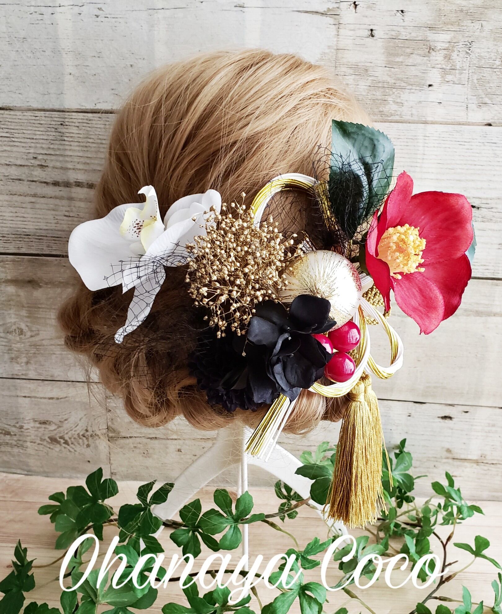 #和装 #造花 #成人式 #袴髪飾り #卒業式 #髪飾りオーダー #大人可愛い #和モダン #シンプル #和風レトロ