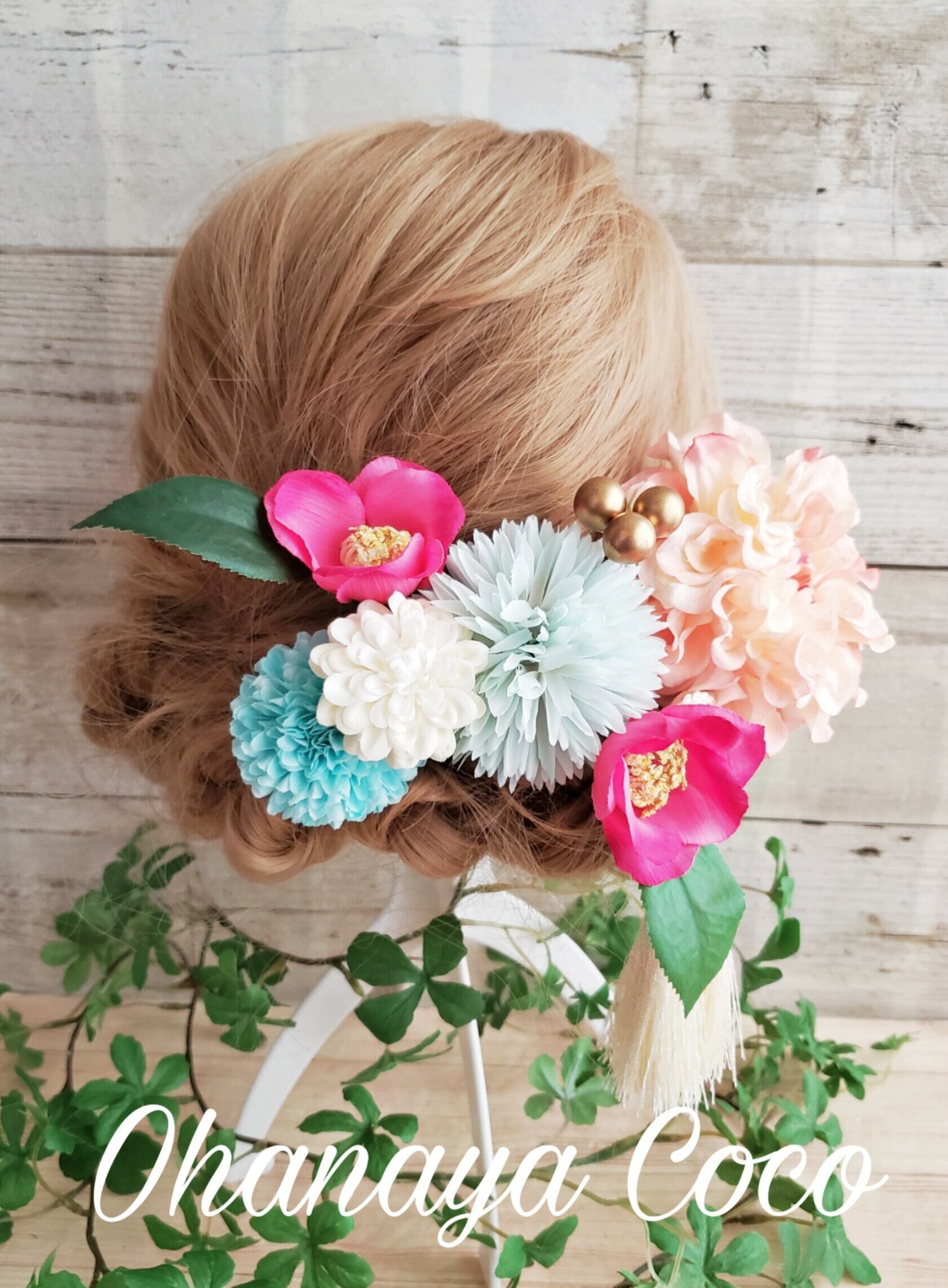 #和装 #造花 #白無垢 #成人式 #袴 #大正ロマン #髪飾りオーダー #キュート #和モダン #和風レトロ #タッセル #袴髪飾り #和装小物