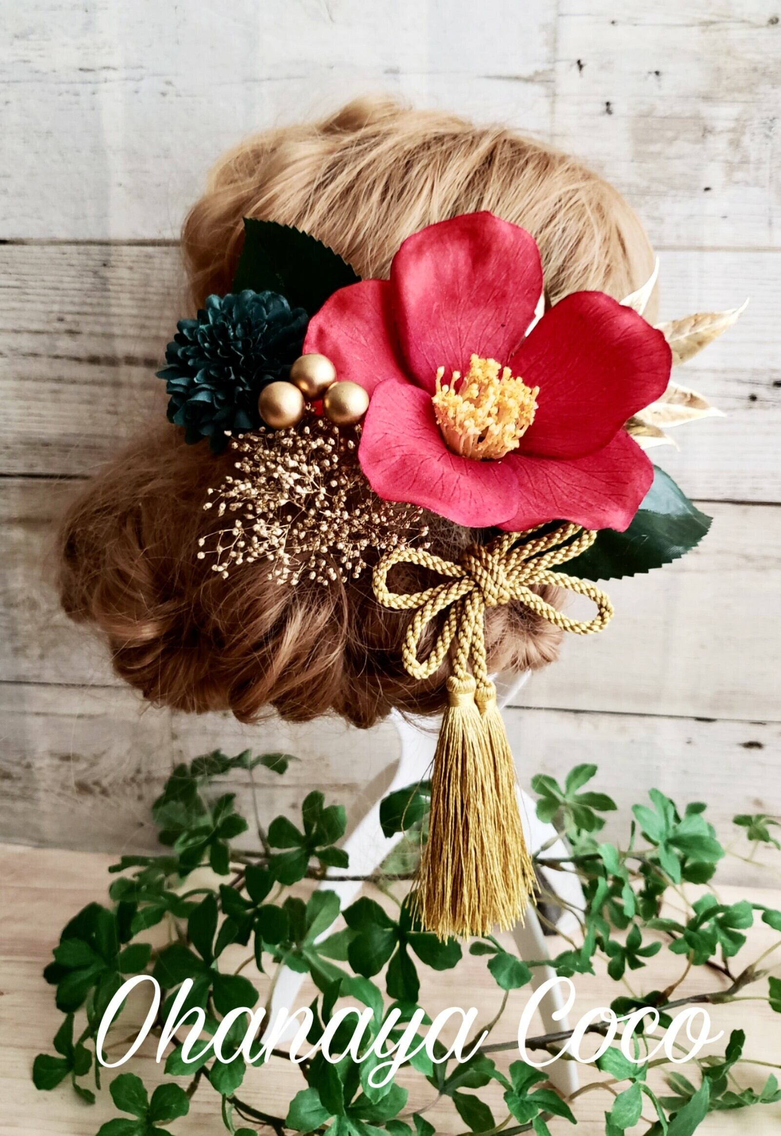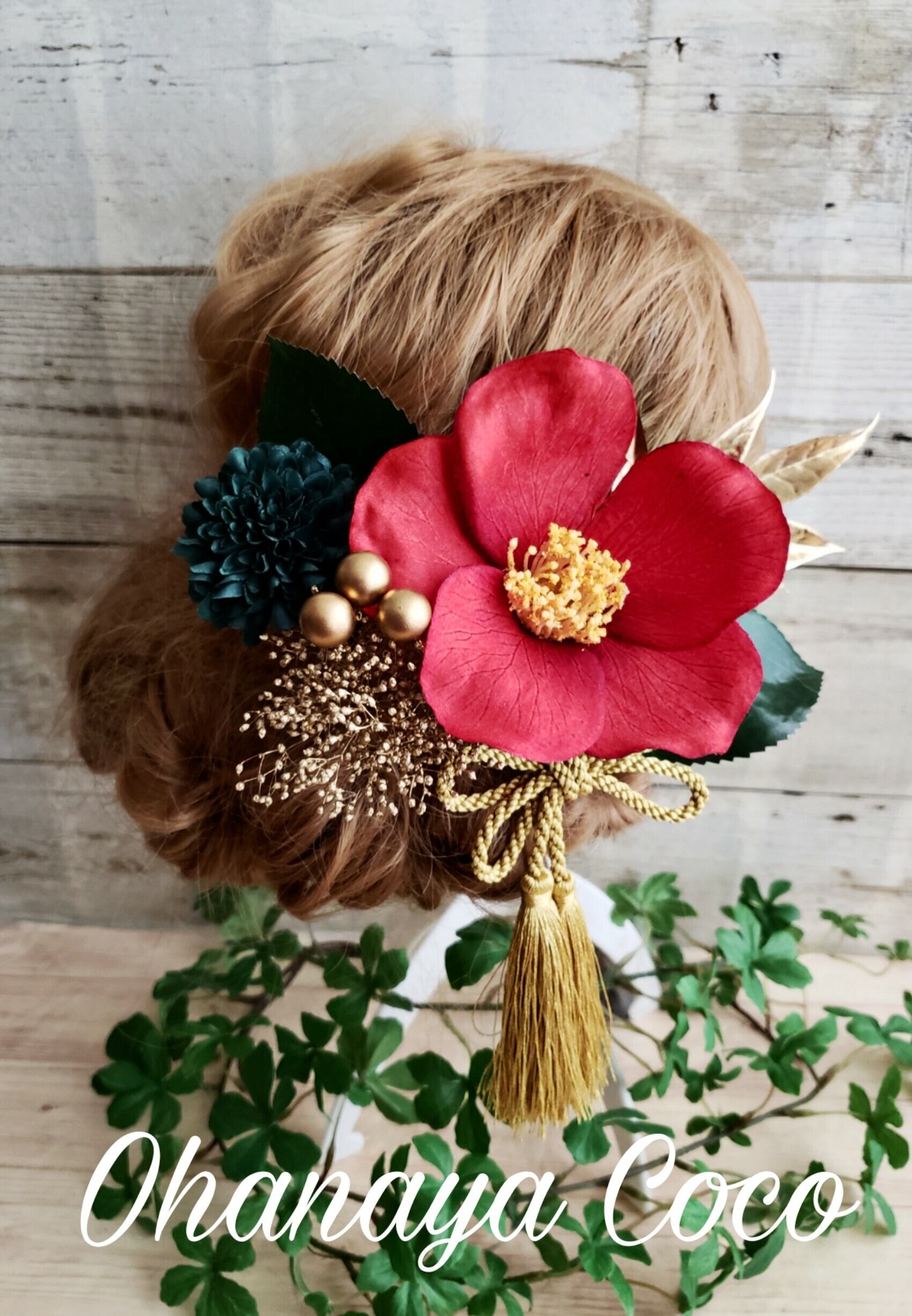 専用 江戸椿とゴールド飾りの髪飾り8点Set オーダー
