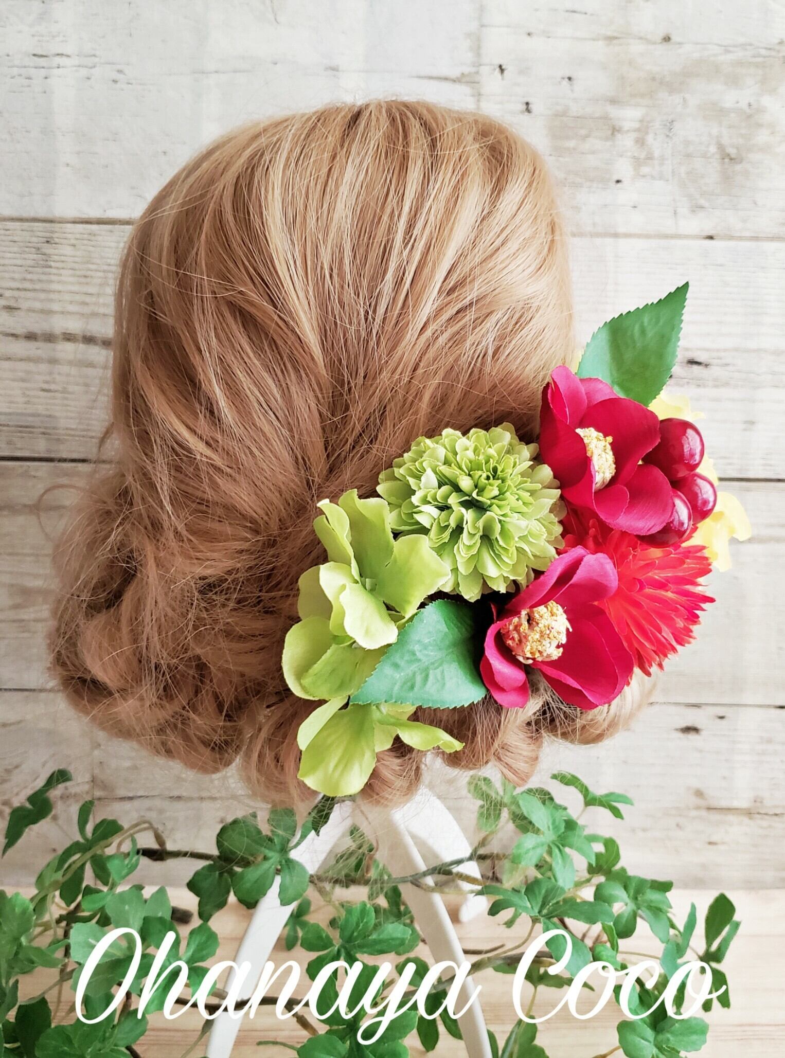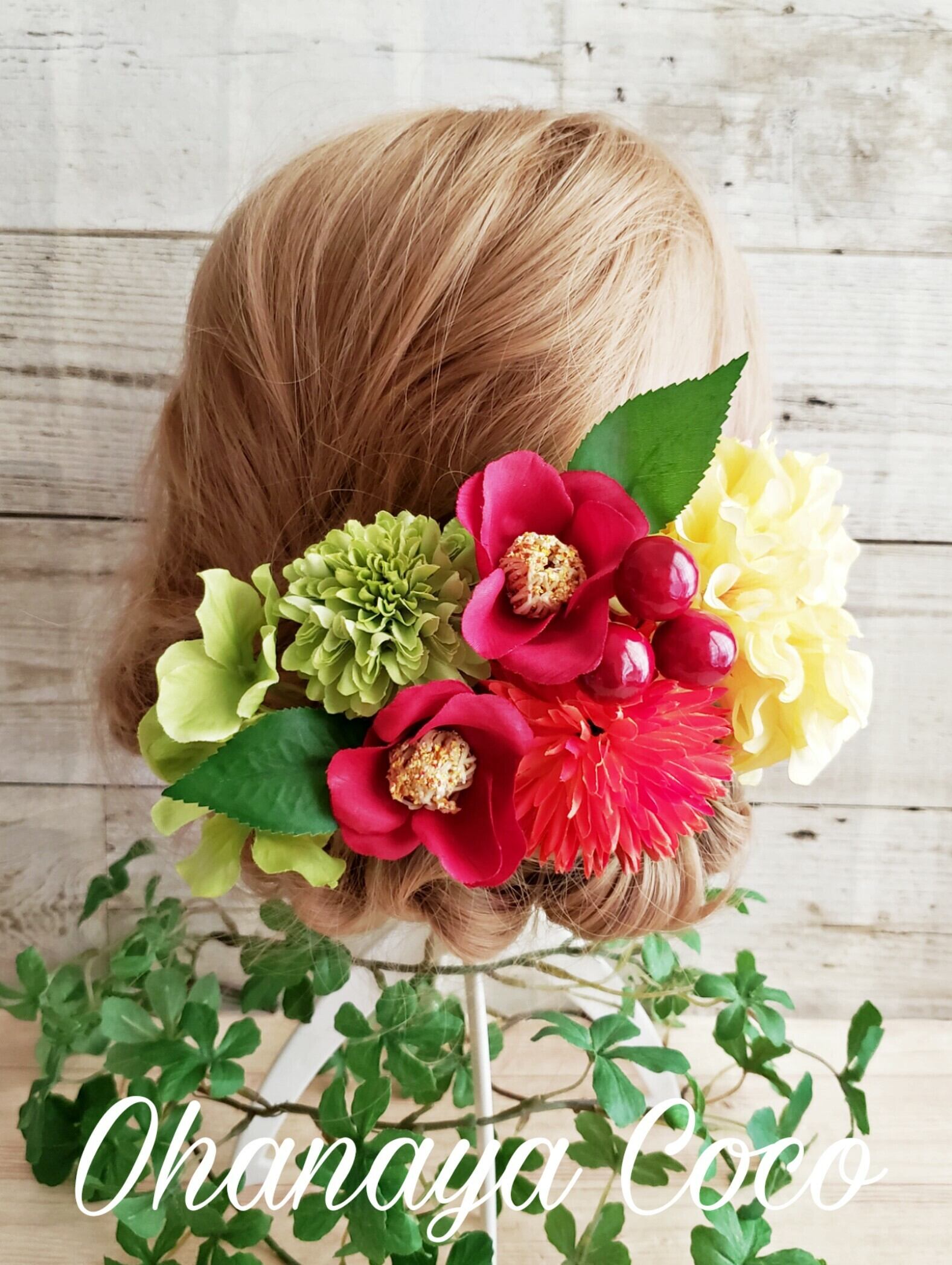 こちらの商品は爽花 椿とダリアの髪飾り7点Setです。