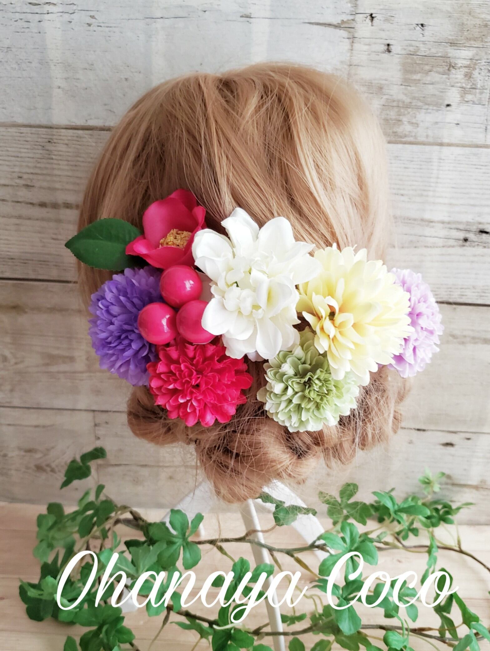 また、撮影角度などにより大きく見える場合もありますので実際の髪飾りの大きさは記載のサイズをご確認下さいませ。