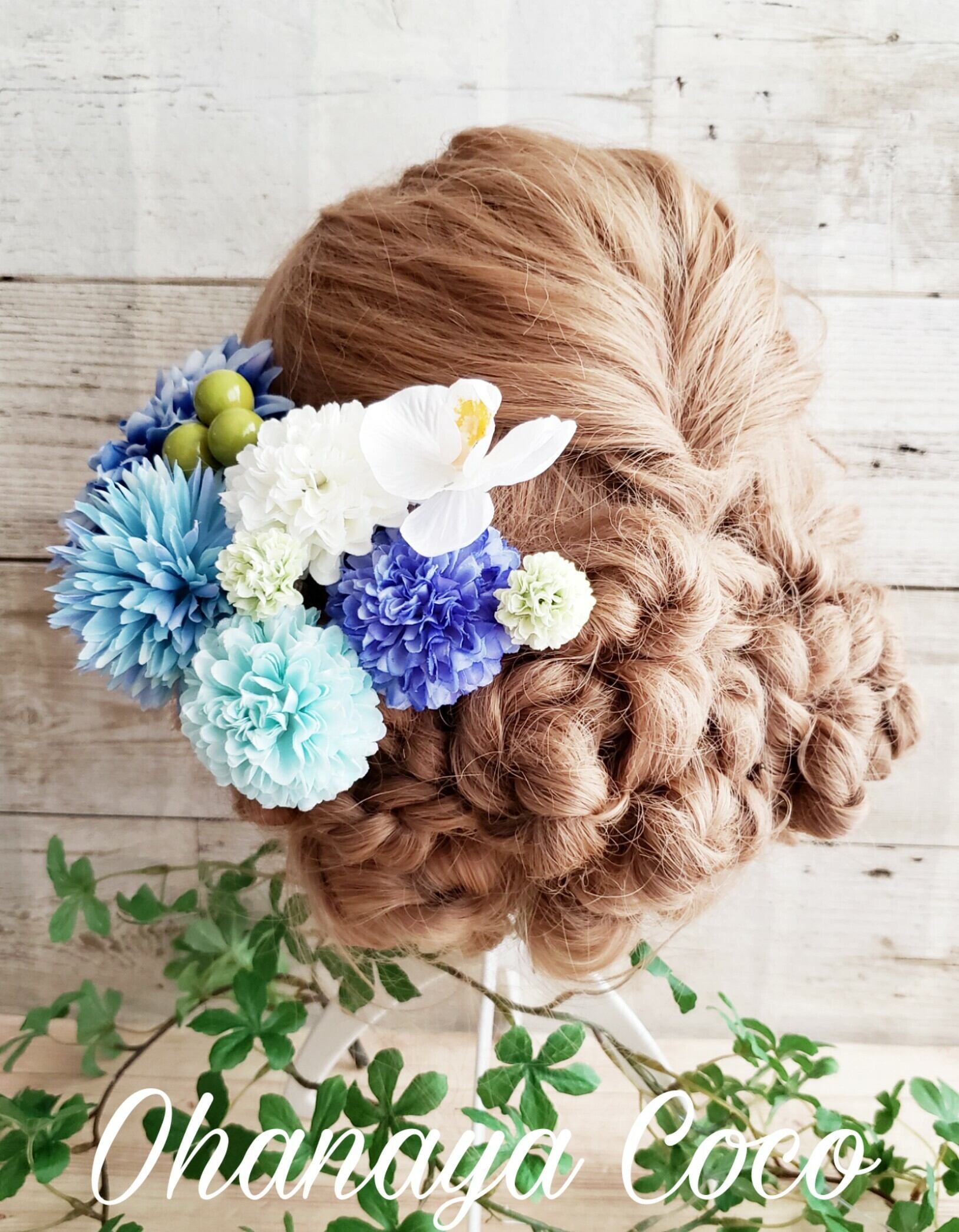 こちらの商品は爽花 青と水色の髪飾り9点Setです。