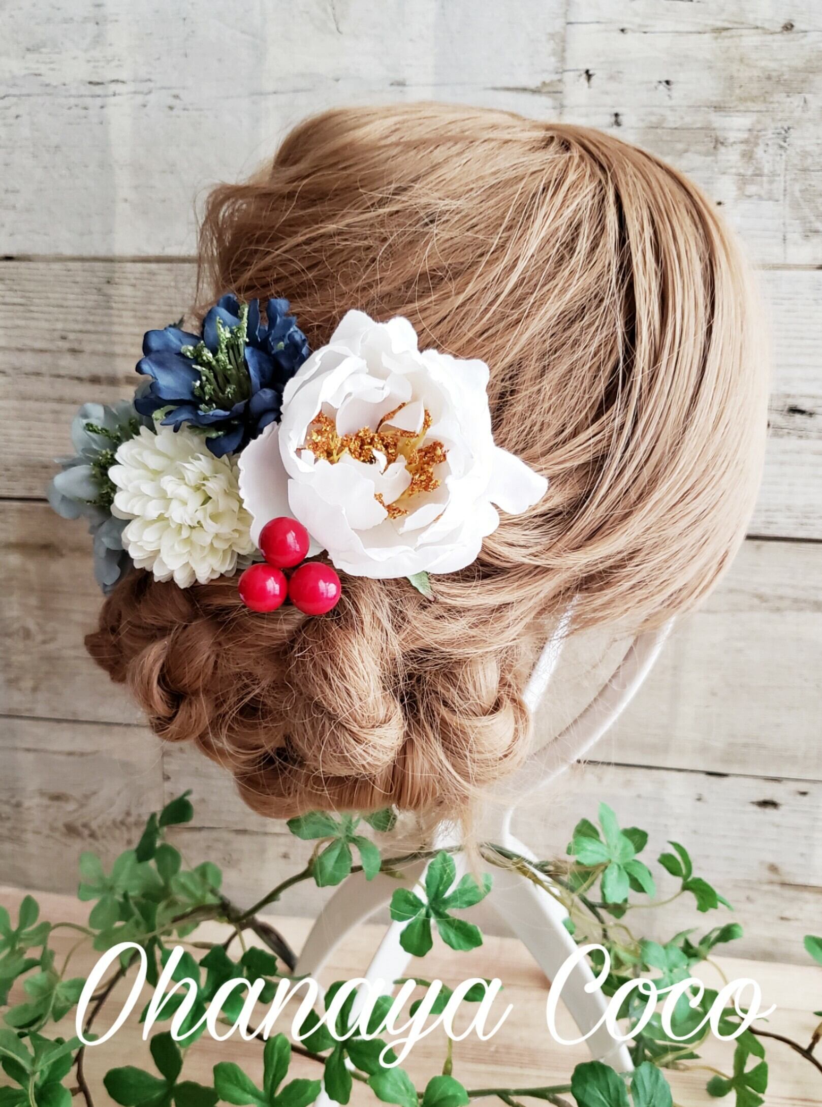 袴や浴衣などにちょこんと配置、派手にならず、華やか上品に仕上がるサイズの髪飾りセットです( 〃▽〃)
