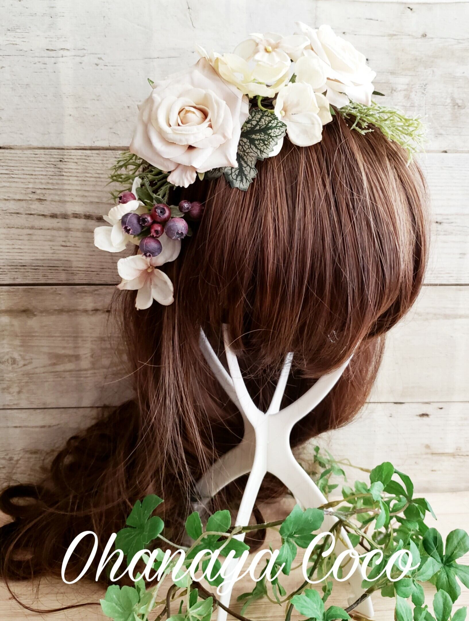 こちらの商品はwedding〜薔薇とベリーのヘッドドレス7点Setです。
