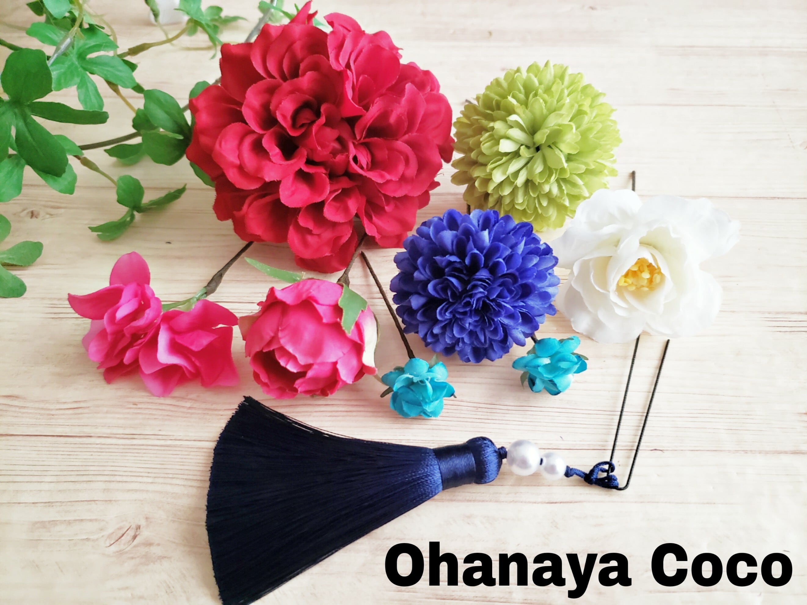 お花はワイヤリングにてIピン加工してあります。