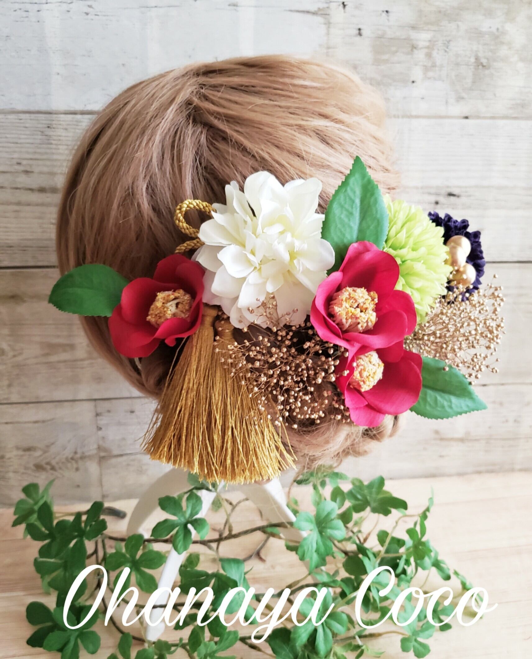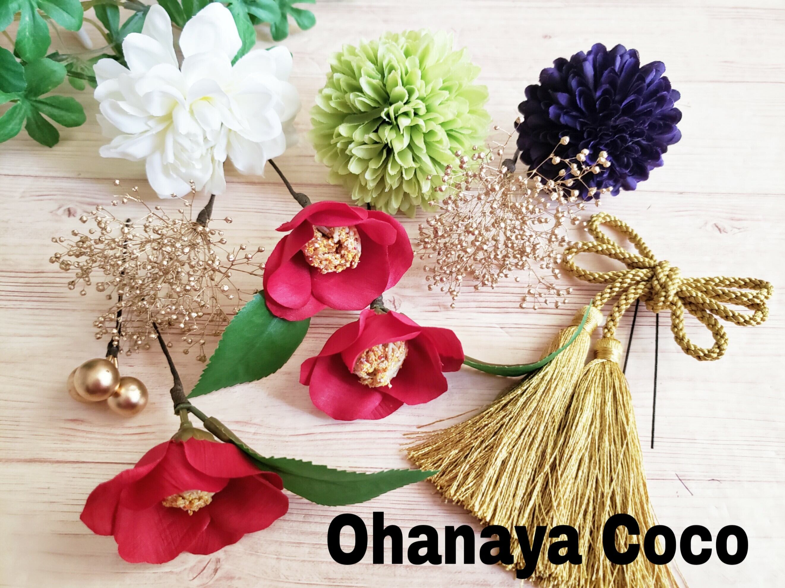 こちらの商品は和モダン ゴールドかすみ草とミニ椿の髪飾り10点Set です。