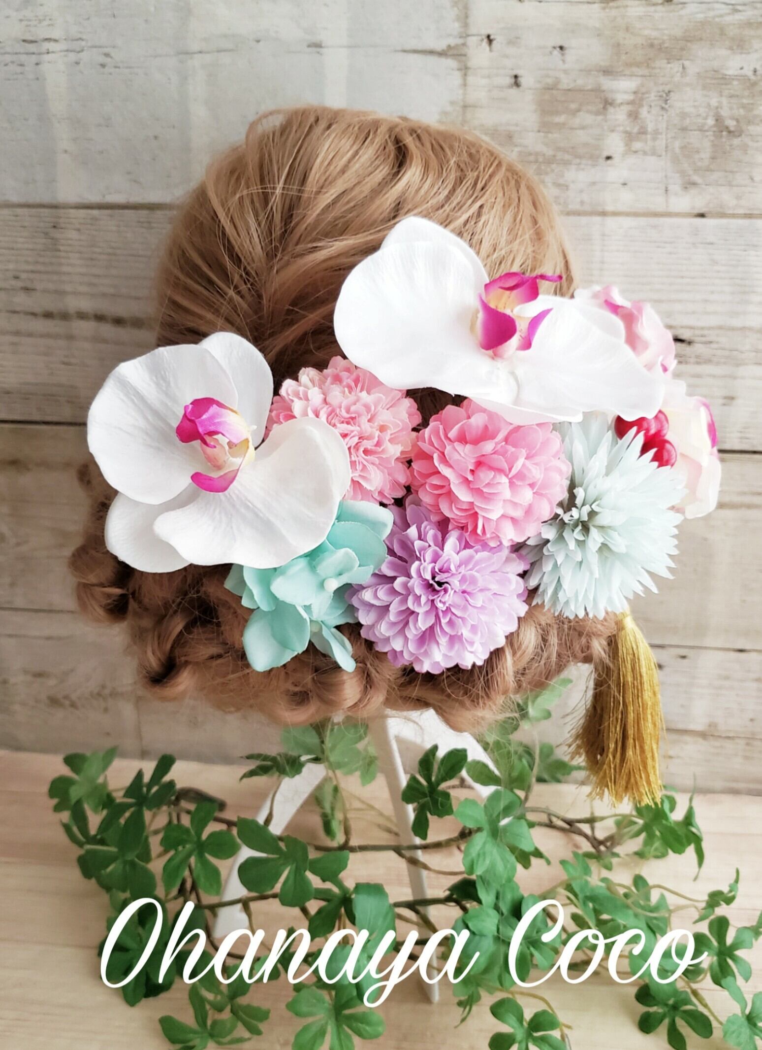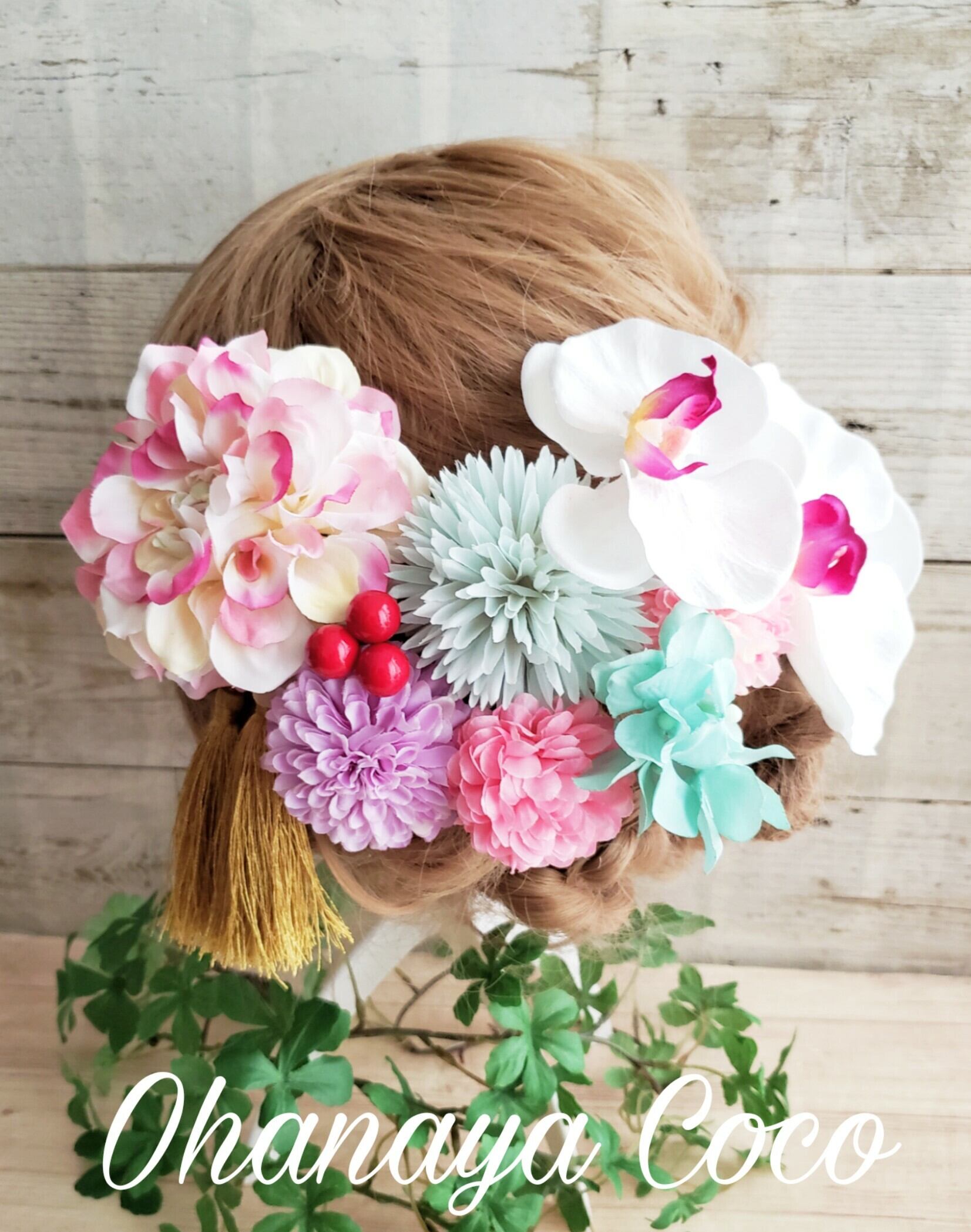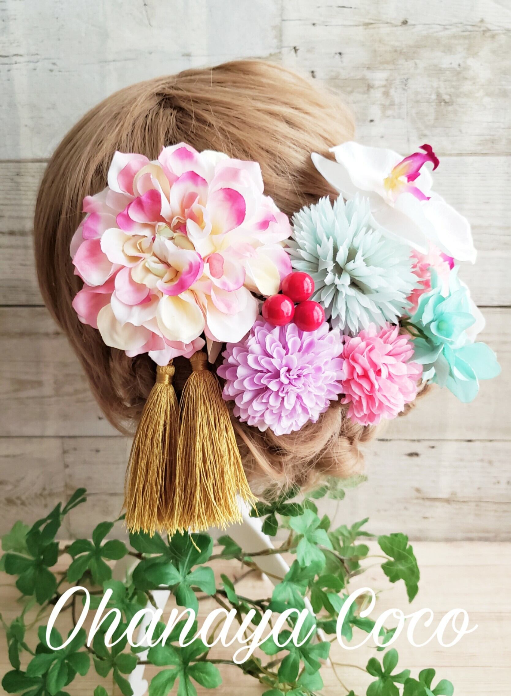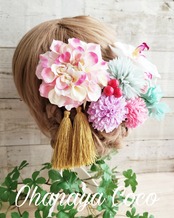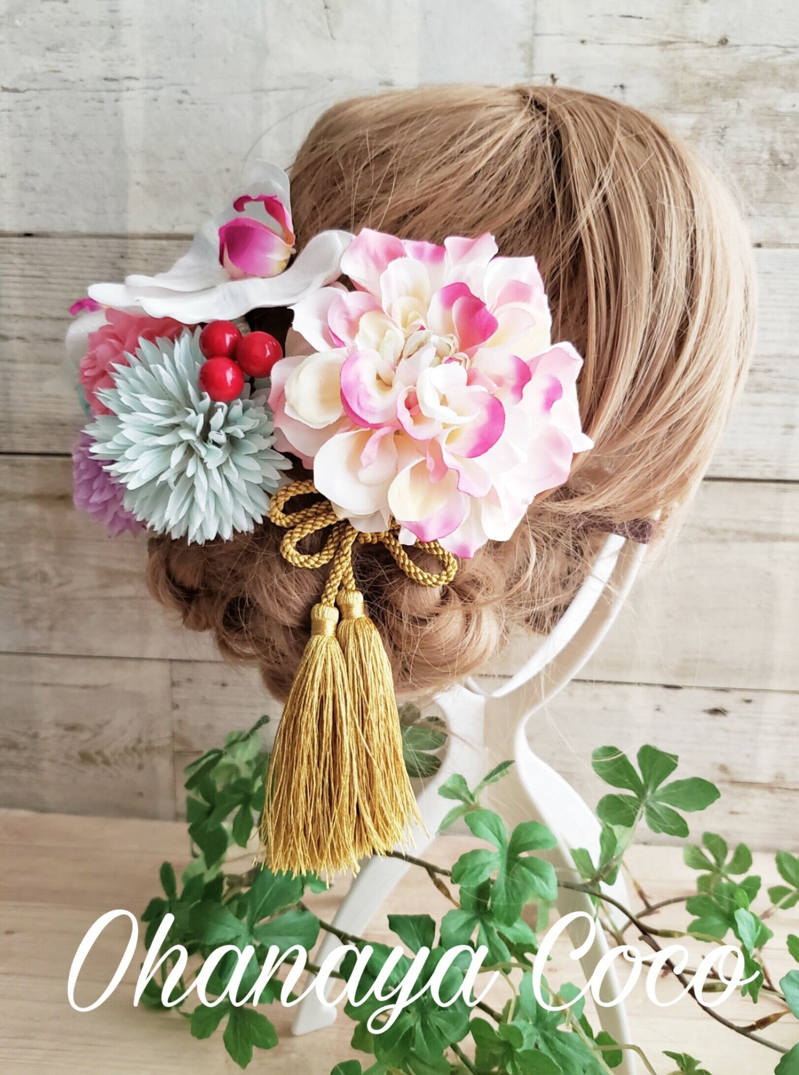 専用 優花 ピンク系ダリアと胡蝶蘭の髪飾り10点Set オーダー商品 メ