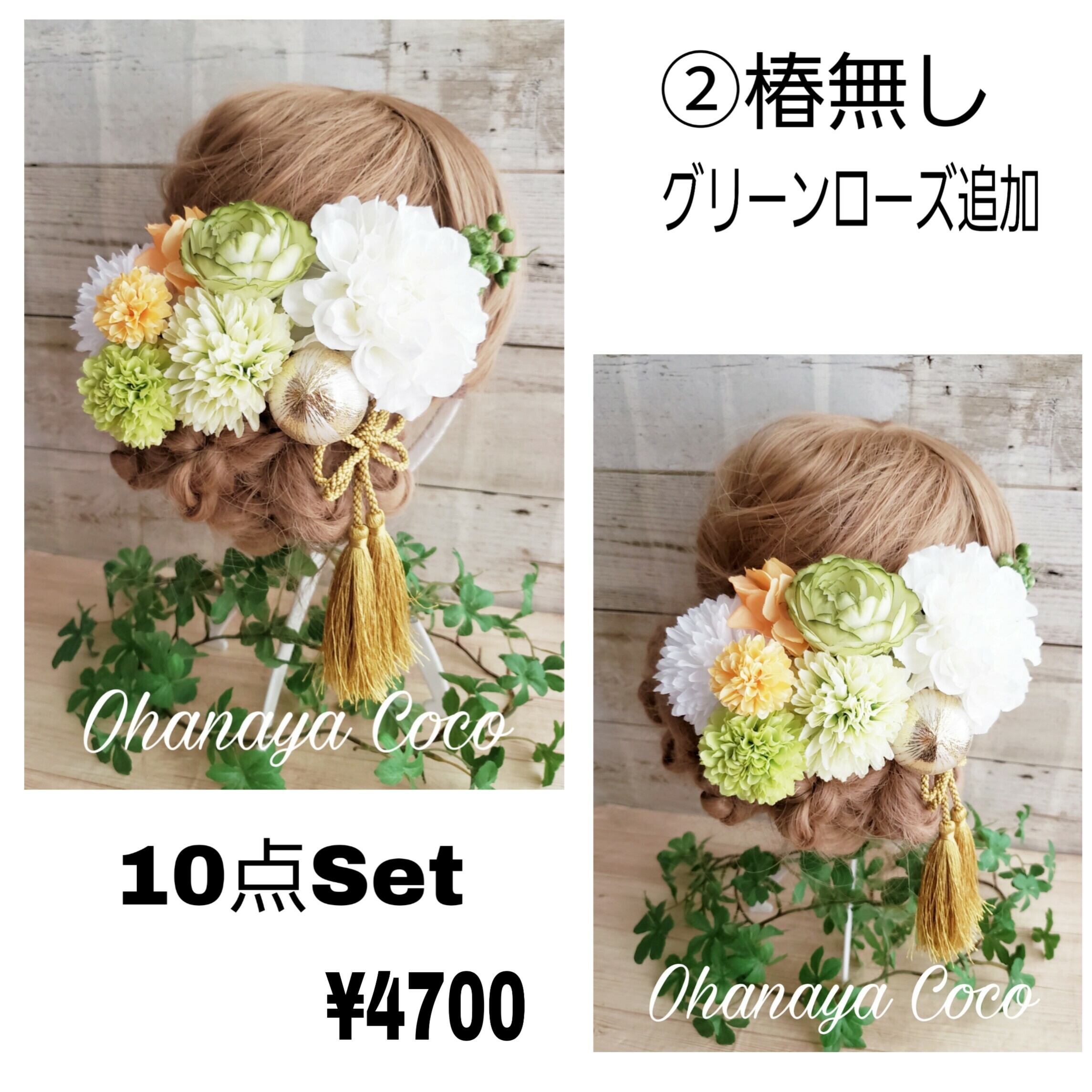 真っ白ダリアとローズの髪飾り10点Setです。
