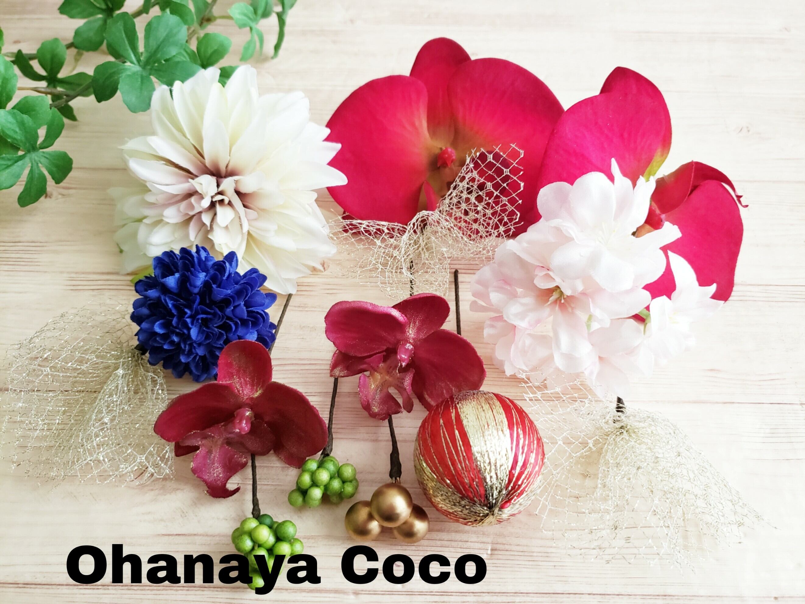 専用 華雅 hirahira 胡蝶蘭とダリアの髪飾り14点Set オーダー商品 20190412メ