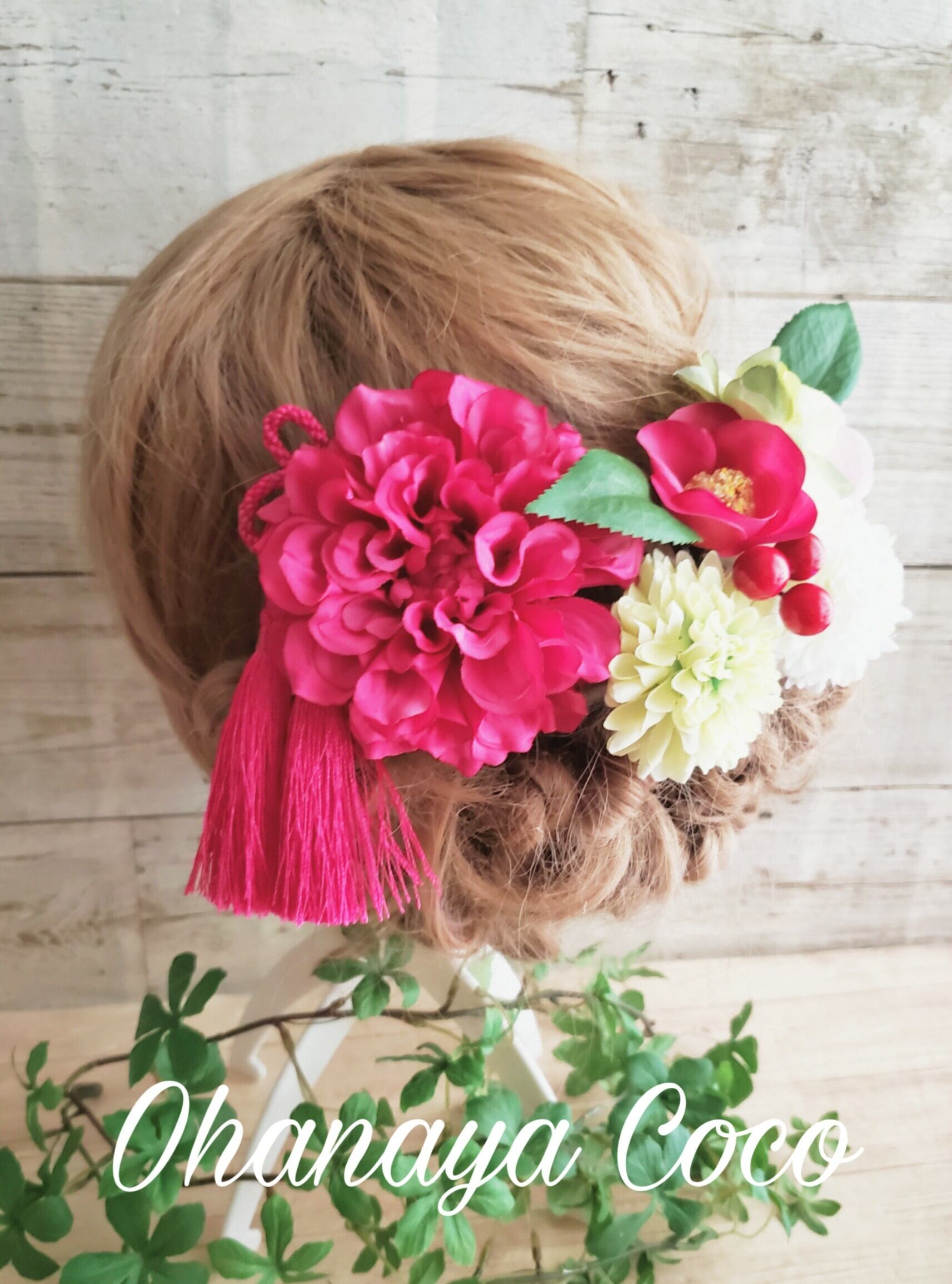 また、撮影角度などにより大きく見える場合もありますので実際の髪飾りの大きさは記載のサイズをご確認下さいませ。