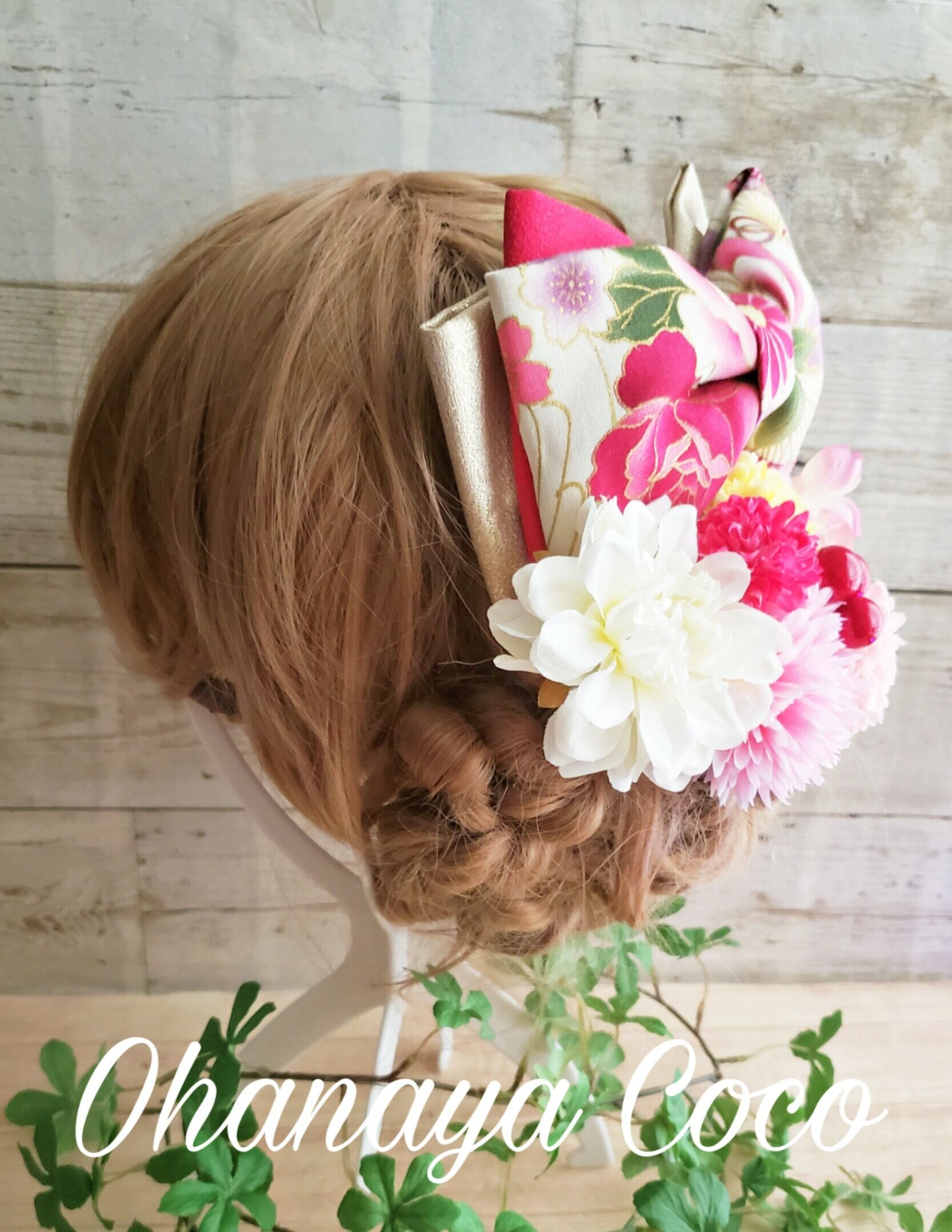#和装 #造花 #白無垢 #成人式 #袴 #大正ロマン #髪飾りオーダー #キュート #和モダン #和風レトロ #タッセル #袴髪飾り #和装小物 #和風リボン #はんなり #kimono #着物 #浴衣髪飾り #色打掛