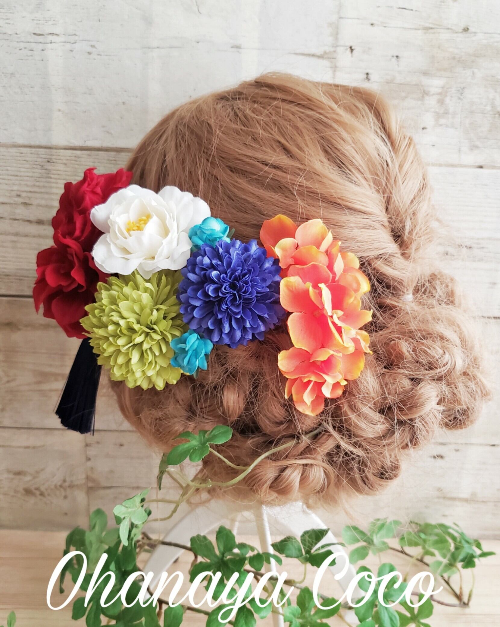 #和装 #造花 #白無垢 #成人式 #袴 #大正ロマン #髪飾りオーダー #キュート #和モダン #和風レトロ #タッセル #袴髪飾り #和装小物