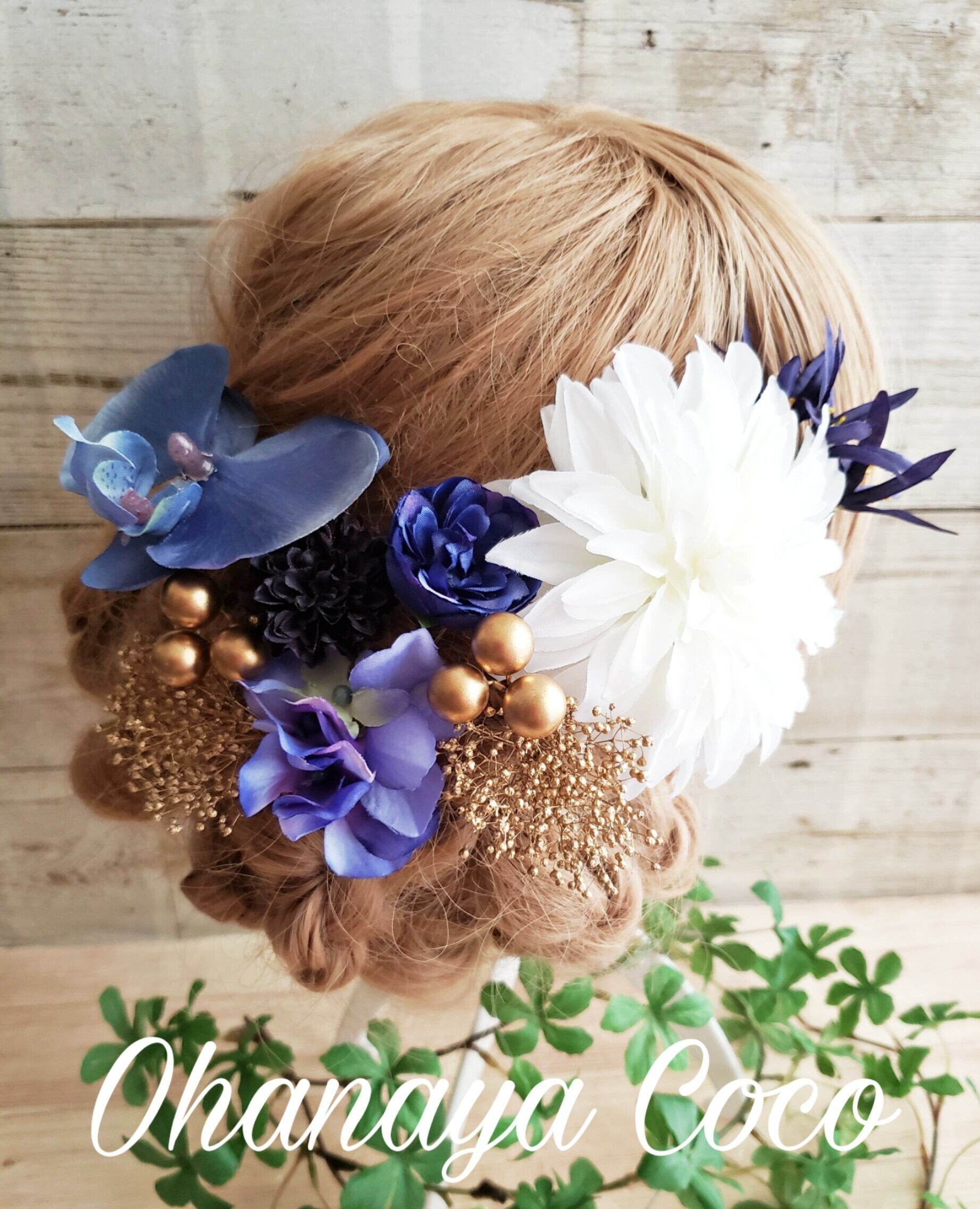 専用 ダリアとゴールドかすみ草の髪飾り10点Set オーダー商品