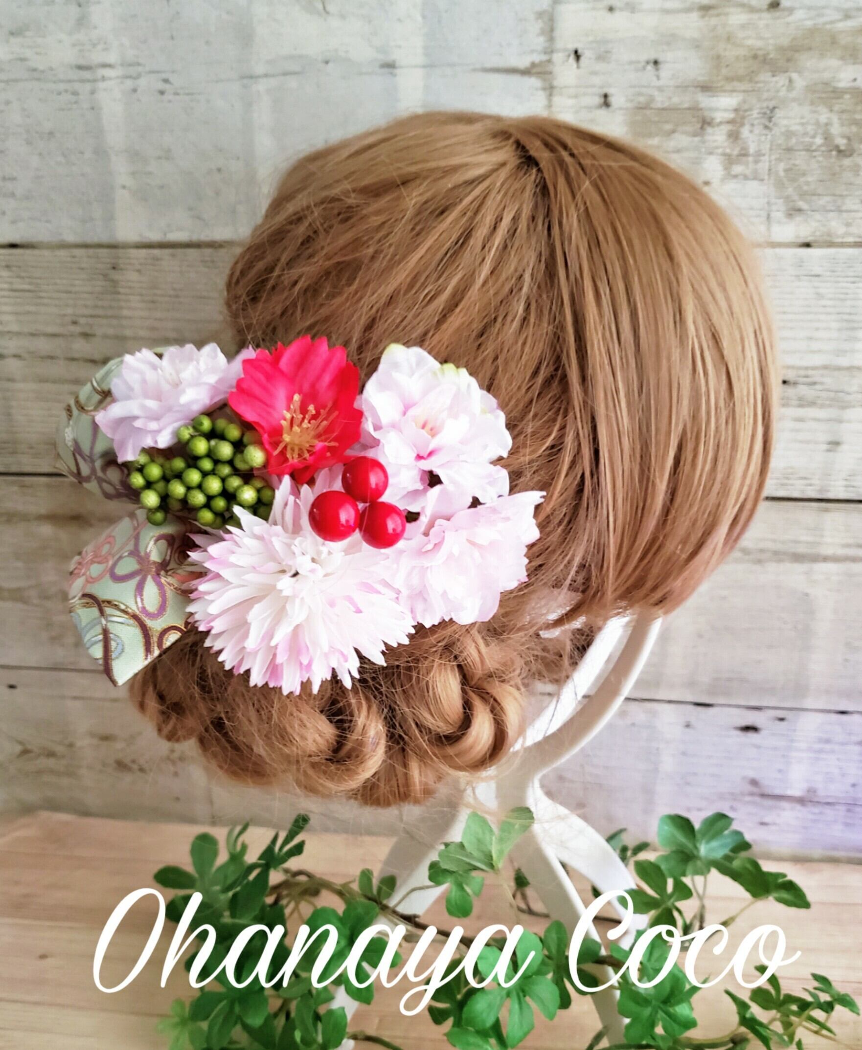 hirahira桜と銀杏リボンの髪飾り8点Set No543 浴衣 お祭り