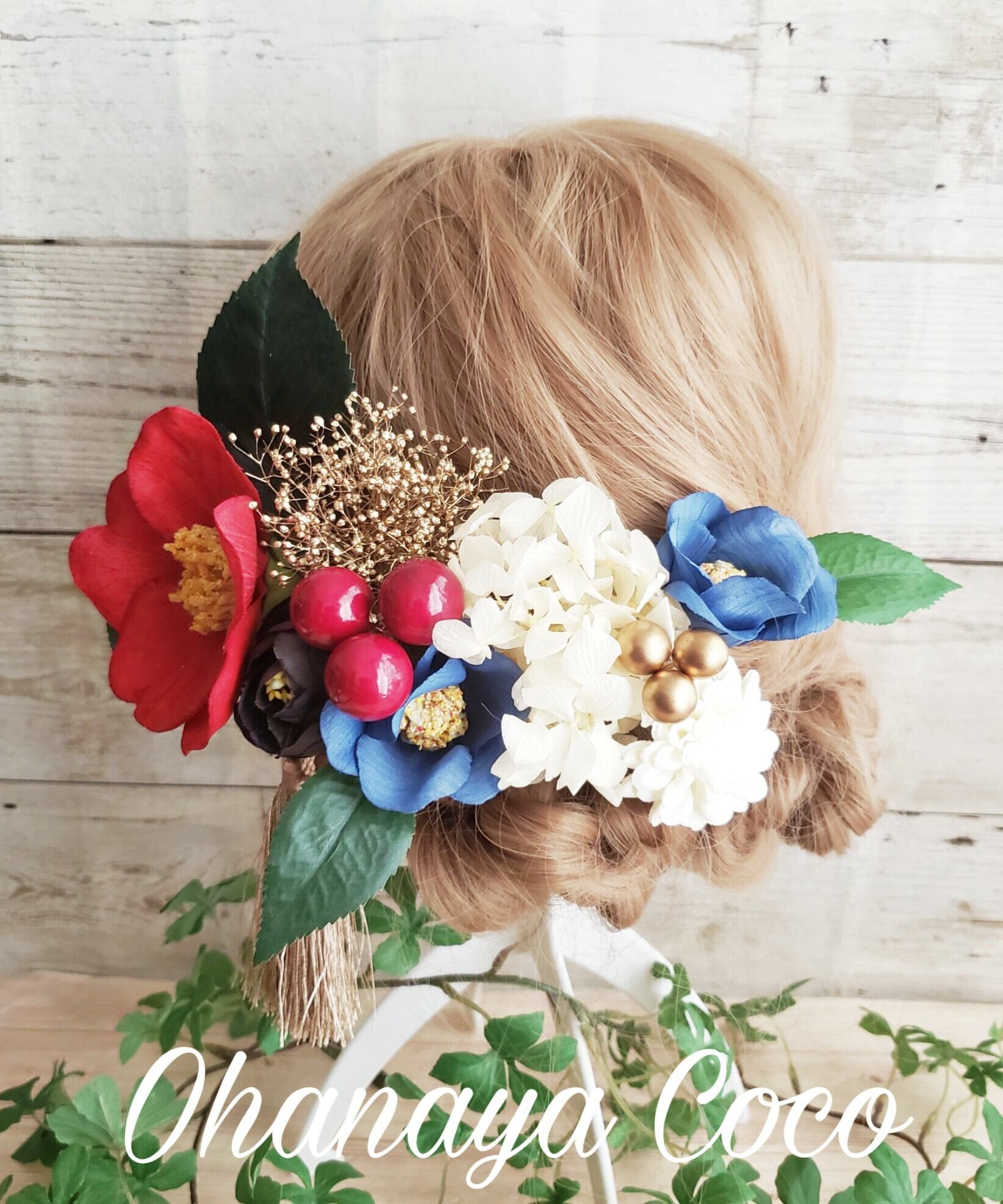 アンティーク風 紺椿と江戸椿の髪飾り10点Set オーダー商品