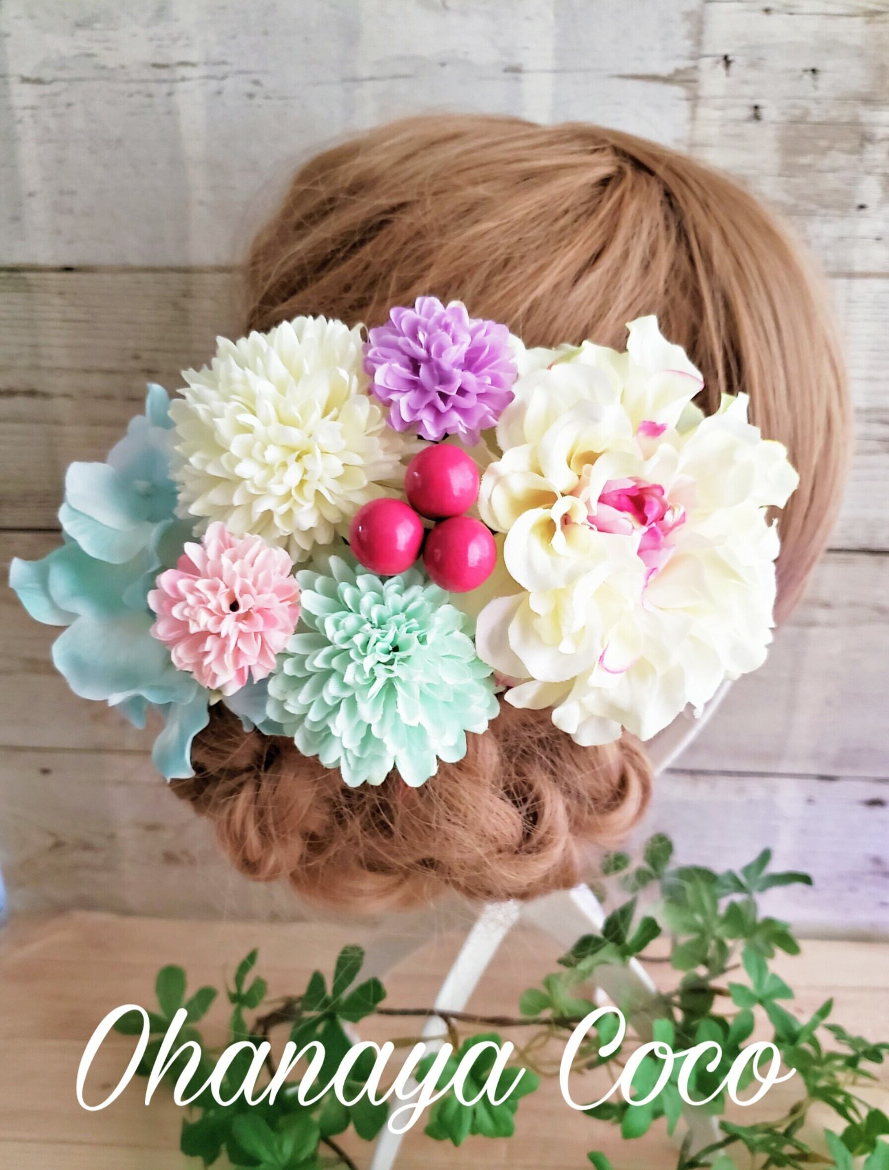 こちらの商品は甘花 ダリアとマムの髪飾り8点Setです。