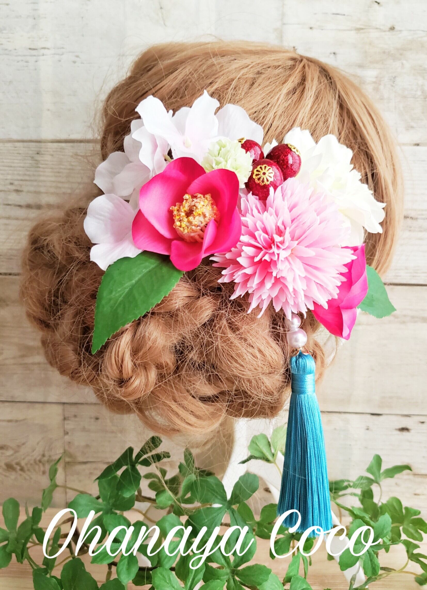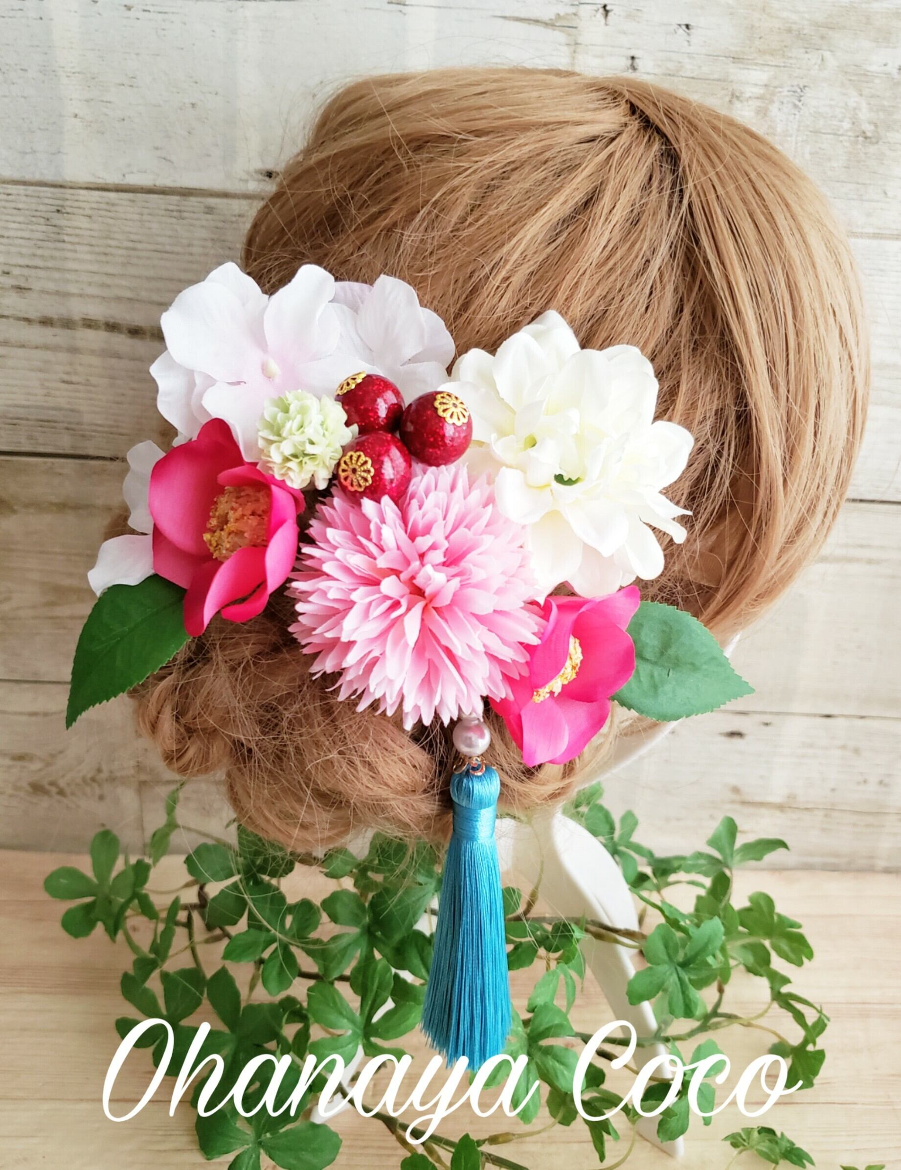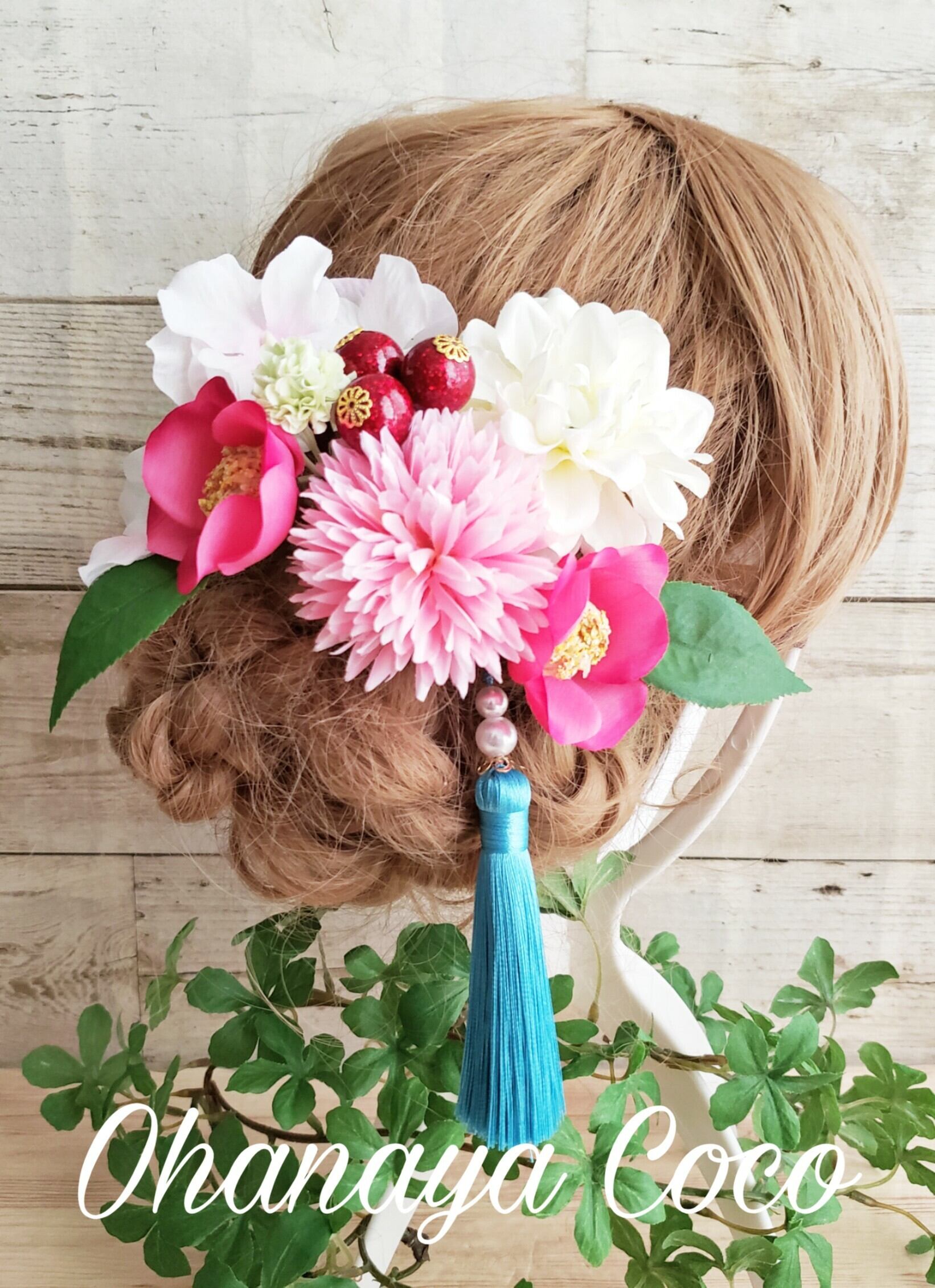 #和装 #造花 #白無垢 #成人式 #袴 #大正ロマン #髪飾りオーダー #キュート #和モダン #和風レトロ #タッセル #袴髪飾り #和装小物