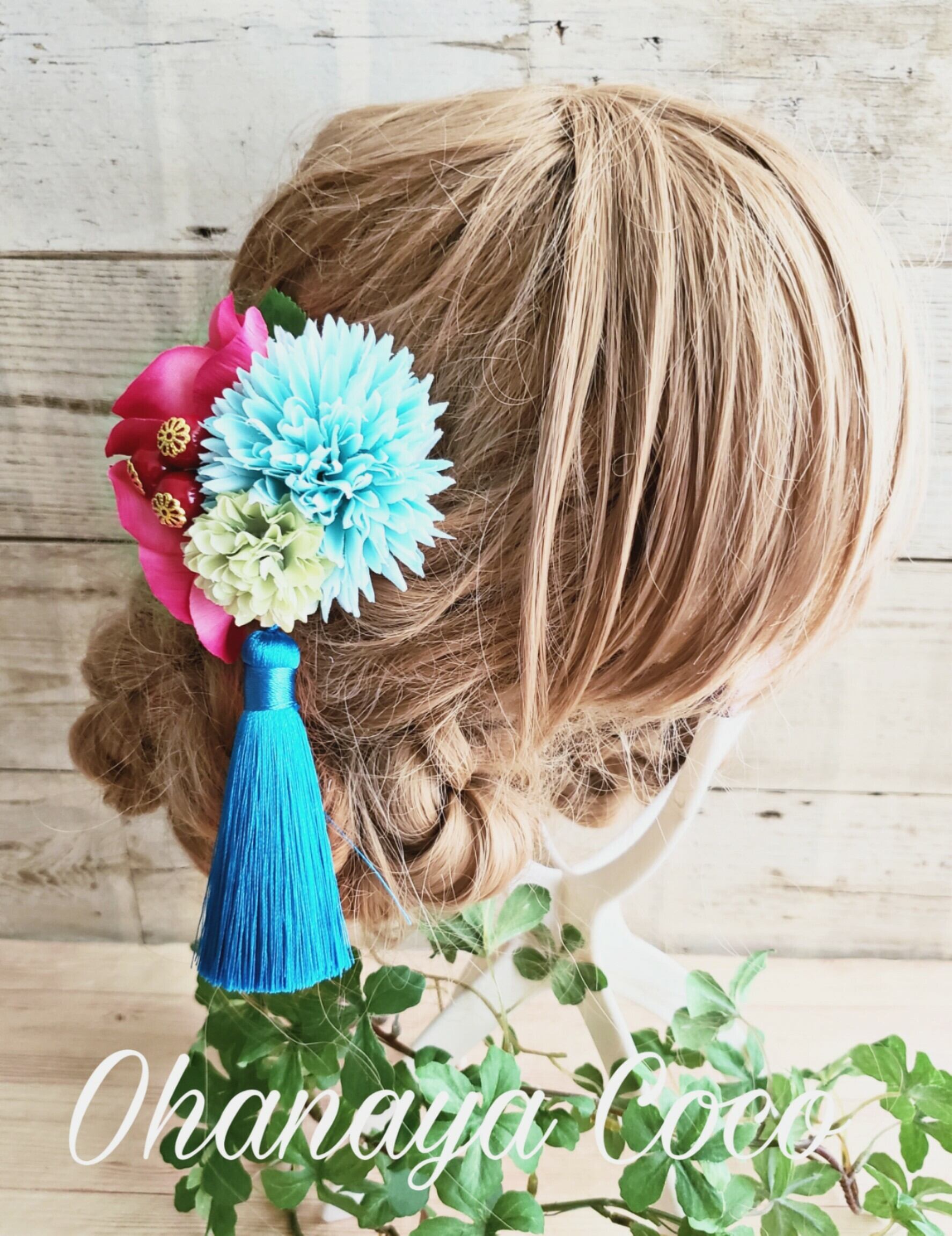ハッキリした色合いの振袖、浴衣、袴など和風モダン系にもピッタリです。