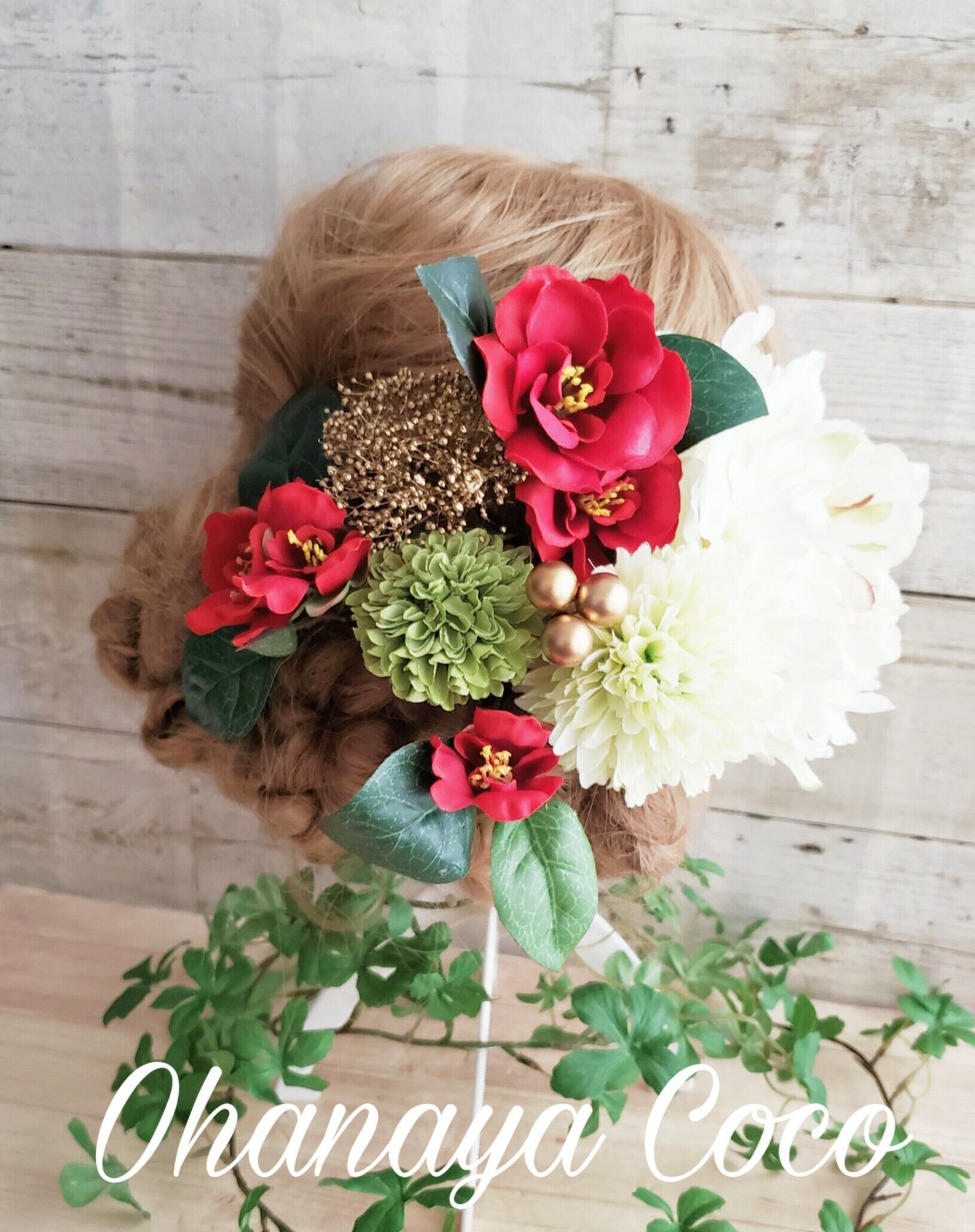 こちらの商品は華雅 芍薬と椿の髪飾り8点Setです。